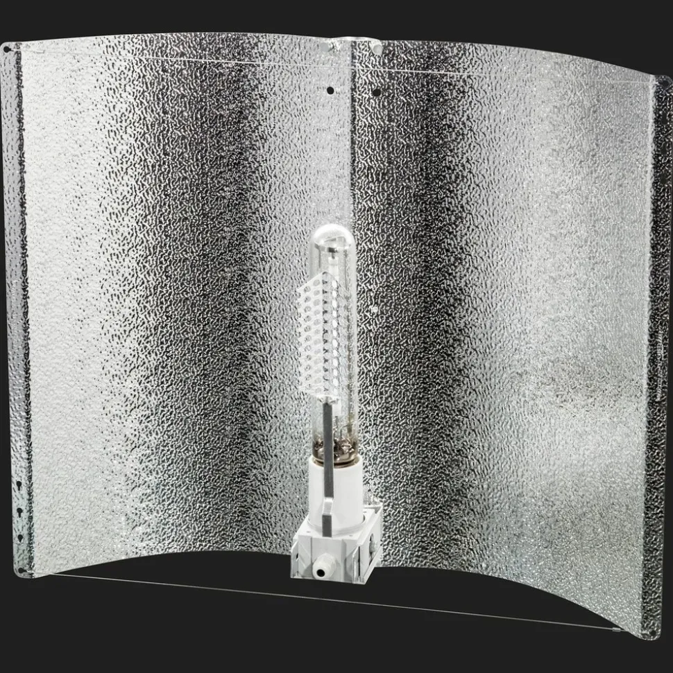 Ce réflecteur horticole Avenger large pour ampoule MH et HPS 600 ou 1000W à suivi un processus de fabrication très pointu. L’aluminium a été plongé dans un bain galvanique sans oxygène qui lui permet de résister à des environnements très humides sans rouiller. Il a ensuite été cuit dans un four à 6000°C puis recouvert de titane et de silice fondus pour assurer et maintenir au fil du temps une capacité de réflexion optimale.