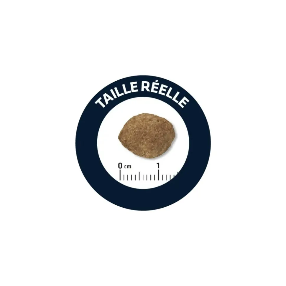 Ingrédients : poulet (15 %), blé, riz (12 %), maïs, protéines déshydratées de volaille, farine de gluten de maïs, farine de blé, protéines animales hydrolysées, son de maïs, protéines déshydratées de porc, pulpe de betterave, graisses animales, levure, huile de poisson, fibre végétale, carbonate de calcium, chlorure de potassium, protéines plasmatiques, disphosphate tétrasodique, phosphate monocalcique, glucosamine, extraits d’agrumes riches en bioflavonoïdes, sulfate de chondroïtine.