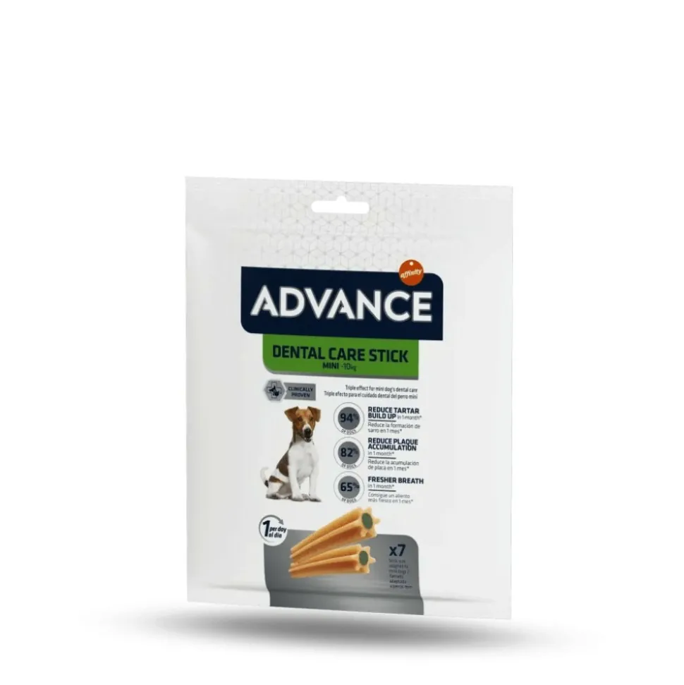 Les Sticks chien ADVANCE DENTAL CARE MINI sont des biscuits sain et appétissant pour chiens qui contiennent une formule exclusive triple effet pour apporter un soin dentaire à votre petit chien.