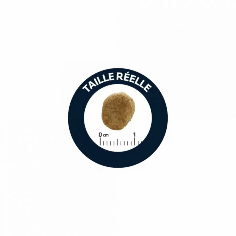 farine de gluten de maïs, protéines déshydratées de volaille, maïs, protéines déshydratées de porc, orge, fibres de petits pois, protéines animales hydrolysées, gluten de blé, amidon, blé, chlorure de potassium, œuf déshydraté, carbonate de calcium, huile d’olive, sel.