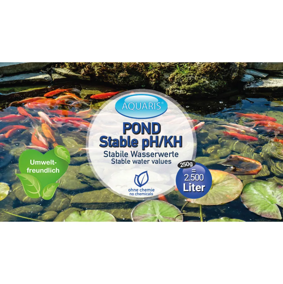 Pour ce faire, nous recommandons l’utilisation de POND Stable pH/KH. Tout comme notre Filterstarter, ce produit d’entretien de bassin est exempt de produits chimiques. Cela garantit une utilisation inoffensive qui ne perturbe pas inutilement les poissons de l’étang.