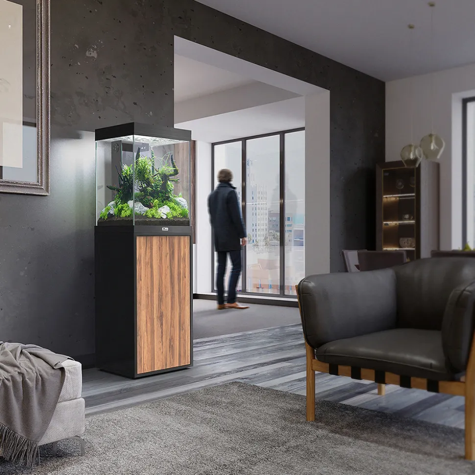 La nouvelle tendance urbaine a inspiré la création de la gamme d’aquariums Tower. Celle-ci a aussi été conçue pour que vos futurs poissons disposent d’un maximum de volume d’eau tout en occupant un minimum de place dans votre intérieur. La hauteur des aquariums de cette gamme permet la création de décors très végétalisés. Ils sont disponibles en 4 dimensions et se présentent comme des ensembles complets avec meuble et équipements performants. Leur filtre intégré et leur système d’éclairage Led 2.0 font partie des atouts des aquariums Tower de même que leur profilé en aluminium moderne assorti avec un cadre « unibody » sans rebords et à la finition parfaite. Très innovante la rampe Easy Led 2.0 est un système d’éclairage de très haute qualité offrant deux canaux de lumière indépendants. Cette technologie très fiable vous assure d’une consommation d’énergie très faible et d’une sécurité électrique parfaite. Les aquariums Tower sont équipés d’un système de filtration complet avec pompe à eau, chauffage et masses filtrantes. Les meubles Tower sont quant à eux équipés d’une porte avec système « soft close’’ pour une fermeture et ouverture facile et en douceur. Ensemble Aqua Tower 96 Led équipé noir et bois 39.9×40.1x H.145.7 cm, épaisseur du profilé d’habillage incluse – Dimensions aquarium L.40x P.40x H.60 cm et dimensions meuble L.40x P.40x H.85 cm.