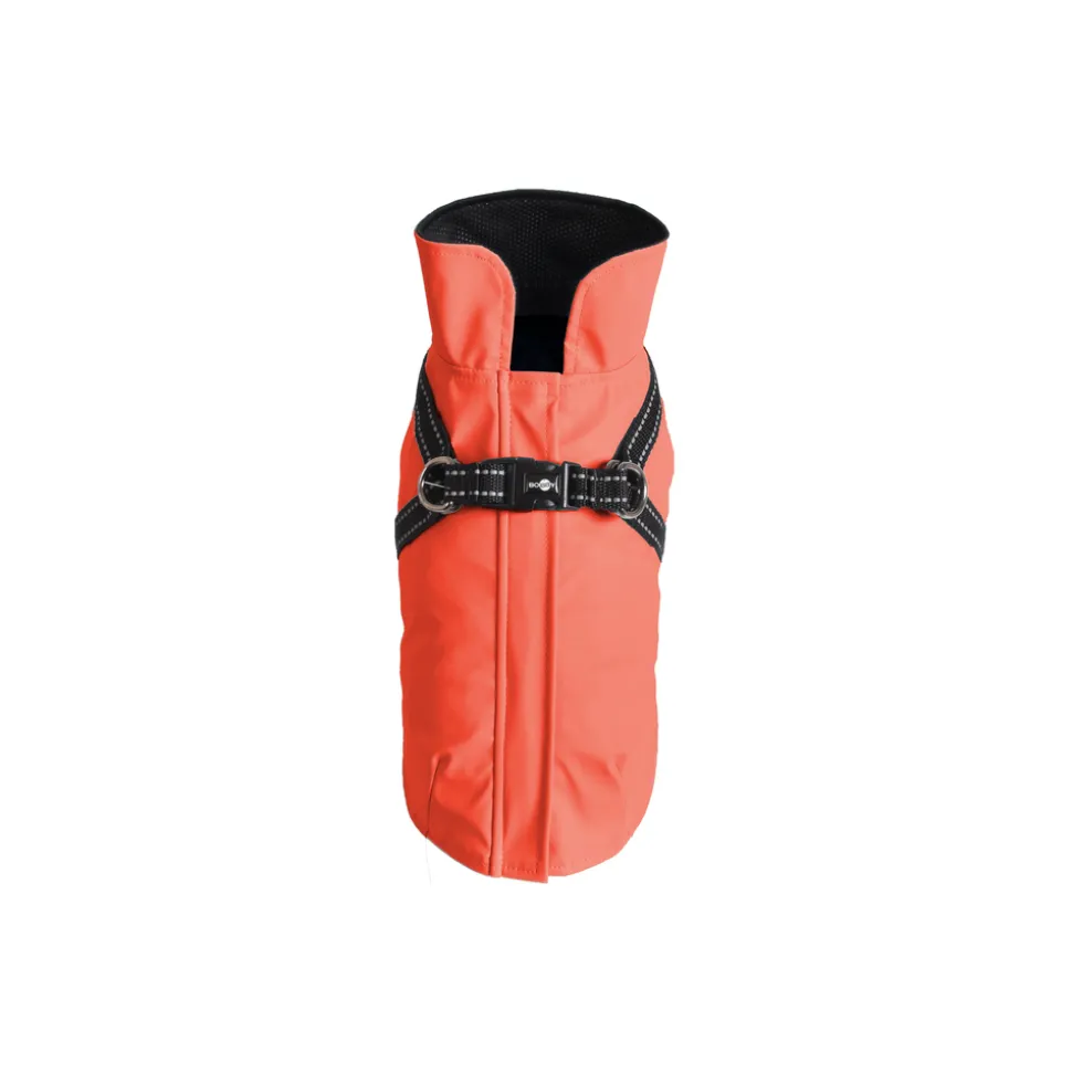 Conçu pour les promenades en extérieur, ce manteau est doté d’un harnais avec détails réfléchissants. Il comporte une fermeture zippée au dos. Sa matière en néoprène est très pratique pour les sorties sous la pluie. Sa doublure en micro-filet respirante assure un bon confort à votre animal de compagnie et lui évite d’avoir trop chaud. Pratique, le col montant repliable préserve l’animal des coups de froid, et peut être ajusté en fonction des besoins. Pour nettoyer le manteau, utilisez simplement un produit lavant doux.