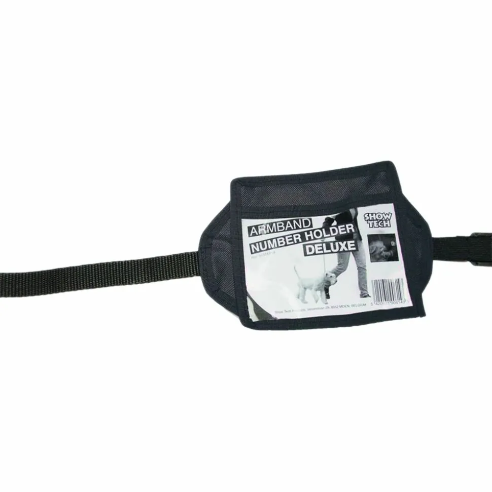 Brassard pour exposition canine Show Tech.Brassard à sangle réglable et confortable.Avec sa pochette transparente pour y glisser le numéro de participant.Caractéritiques et avantages :Coloris noir.Pour une meilleure présentation du binôme chien/maitre.Pratique et visible.Dimensions : 15 x 13 cm.