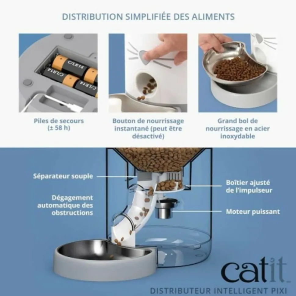 Le distributeur intelligent Catit PIXI se souviendra de servir a votre chat la bonne portion d’aliment, exactement au bon moment. Meme lorsque vous n’etes pas a la maison.