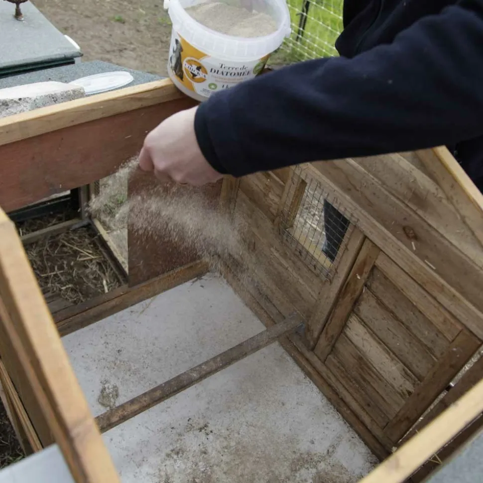 Non toxique pour l’homme (de qualité alimentaire), elle peut s’utiliser aussi bien à l’intérieur qu’à l’extérieur. Sans produits chimiques, elle est idéale pour aider à assainir un poulailler, elle sert aussi à absorber les odeurs des animaux de compagnie. Il suffit de saupoudrer la terre de diatomée sur l’animal, de le masser et le brosser. Présente dans les additifs alimentaires, la terre de diatomée peut être utilisée en toute sécurité lorsqu’elle est non calcinée. Elle permet ainsi d’éliminer les odeurs et d’absorber l’humidité des poulaillers sans danger. Efficace pour contribuer à assainir les poulaillers et sur les animaux de compagnie tels que les chiens ou les chats. ADDITIFS TECHNOLOGIQUES, PAR KG Kieselguhr (terre de diatomée, nettoyée) (E551C) 1.000.000 mg Caractéristique : Contenance : 3 kg