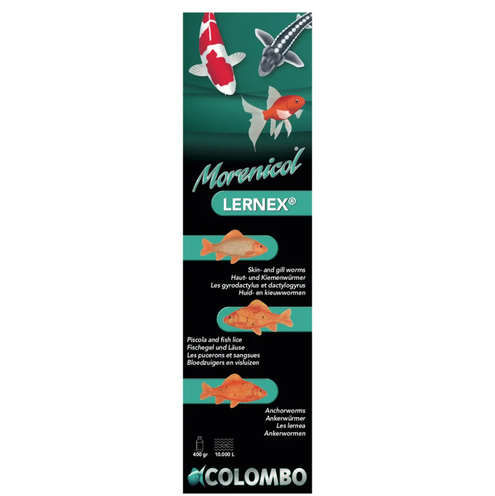 Prenez soin de vos poissons en luttant contre leurs parasites grâce à Lernex. Il s’agit d’un produit facile à utiliser puisqu’il se mélange à l’eau de votre bassin ou de votre aquarium. Lernex lutte efficacement contre différents parasites qui peuvent affaiblir vos poissons et les rendre malades. Ainsi, grâce à Lernex, vous pouvez vous débarrasser des vers de la peau et des branchies, des vers internes, des sangsues, des poux du poisson et des vers à crochets. Cet antiparasitaire Lernex contient 400 grammes de produit pour 10 000 litres d’eau.