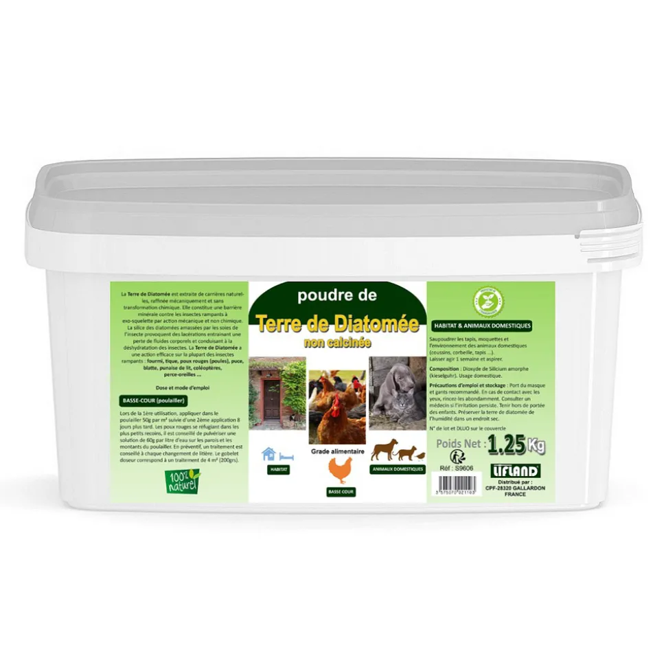 Prenez soin de vos animaux avec la poudre de terre de diatomées qui est une action naturelle et biologique contre les insectes rampants. Cette poudre protège vos animaux des parasites : poux, poux rouges, puces, cafards, blattes, punaises de lit, limaces et escargots. La terre de Diatomées absorde l’humidité de manières très efficace des lieux de vie de vos animaux (poulaillers, litières, tâche d’urines, tâche sur tissus). Action naturelle et biologique contre les insectes rampants. Elle est inoffensive pour les vers de terre. Ce produit est sans conservateurs ni adjuvants, sans produits chimiques.