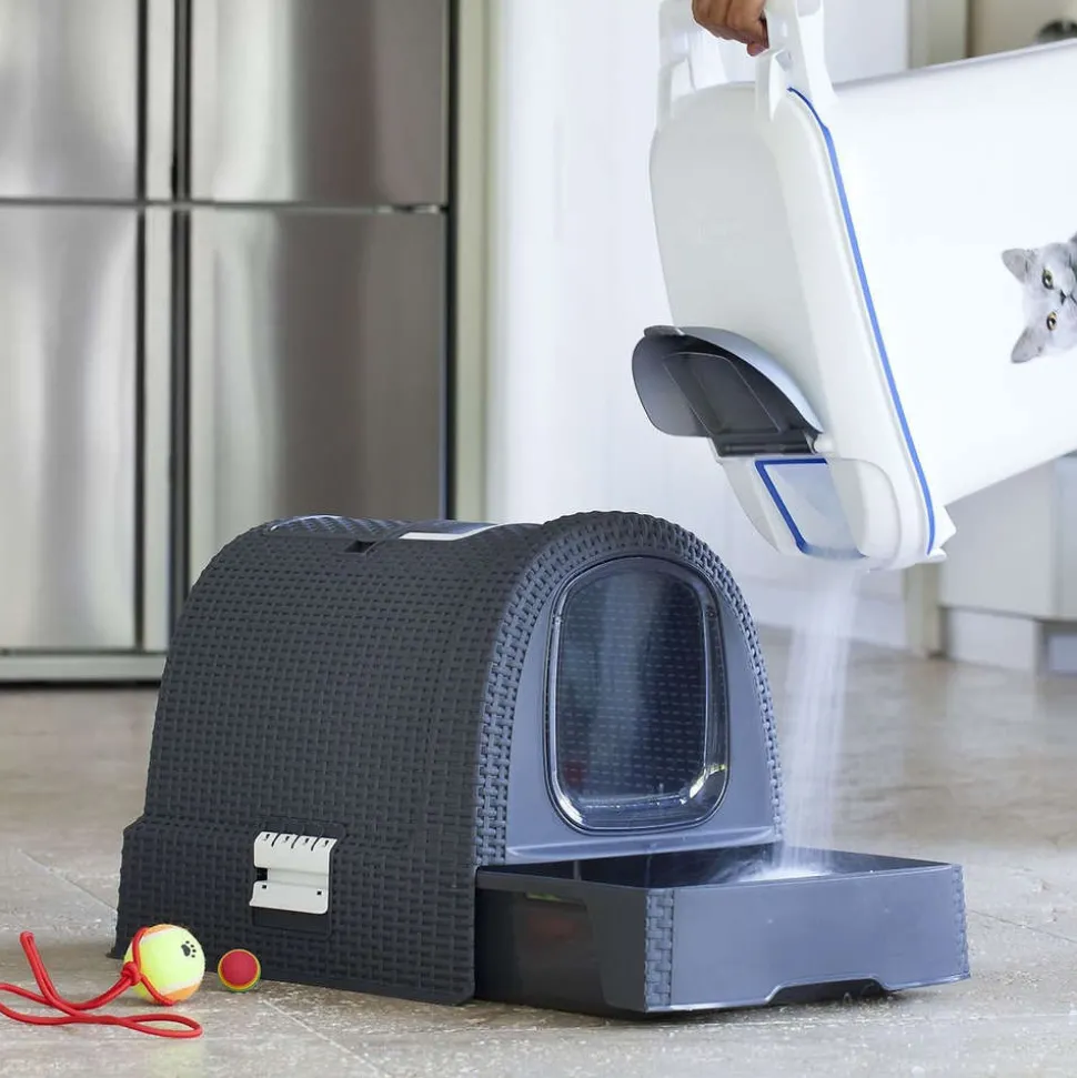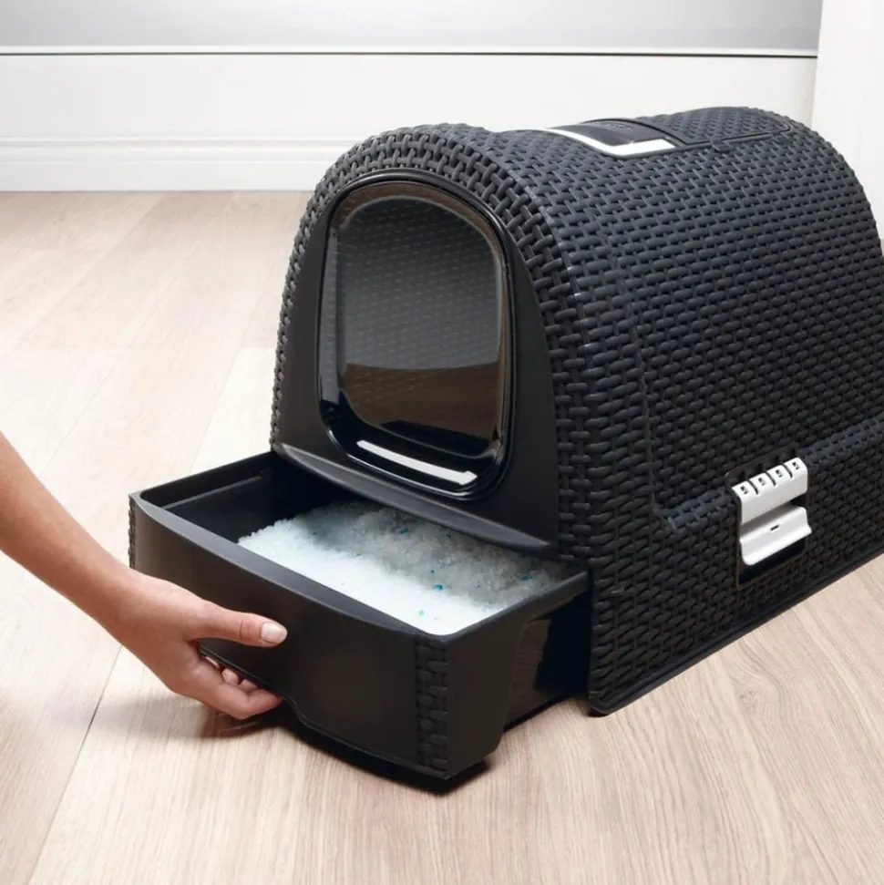 Ce bac à litière pour chats de Curver avec un magnifique design sera le choix idéal pour votre chat. Ce bac à litière est fabriqué en rotin plastique très résistant et de haute qualité. Il dispose d’un tiroir très pratique qui permet de vider facilement la litière et de vérifier si elle doit être nettoyée. Le tiroir est équipé d’un plateau avec des trous pour maintenir les excréments hors du bac à litière, de sorte qu’il reste frais plus longtemps. Combinant un design élégant avec des fonctionnalités pratiques, ce luxueux bac à litière sera génial dans n’importe quel décor. ulliCouleur: Anthracite/liliMatériau : Plastique/liliDimensions : 51 x 38,5 x 39,5 cm (L x l x H)/liliAvec une poignée de transport/liliMontage facile grâce à des pinces de fermeture/liliFacile à nettoyer/li/ul