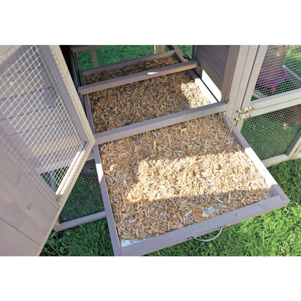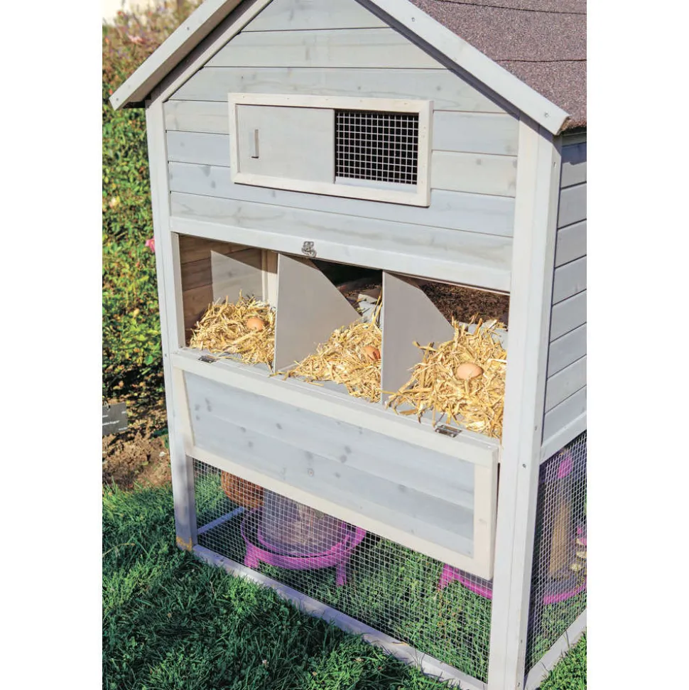 De montage facile, ce poulailler Guadiana fabriqué en bois FSC, offre à vos poules le confort nécessaire à leur bien-être au quotidien. Intégrant trois nichoirs avec accès par l’extérieur, d’une rampe donnant accès au parc extérieur. Conçu pour durer, ce poulailler Guadiana présente un toit en shingle, un matériau apprécié pour sa résistance et sa simplicité d’entretien. Poulailler Guardiana en bois pour 6 poules avec pondoir 217x106x145cm.