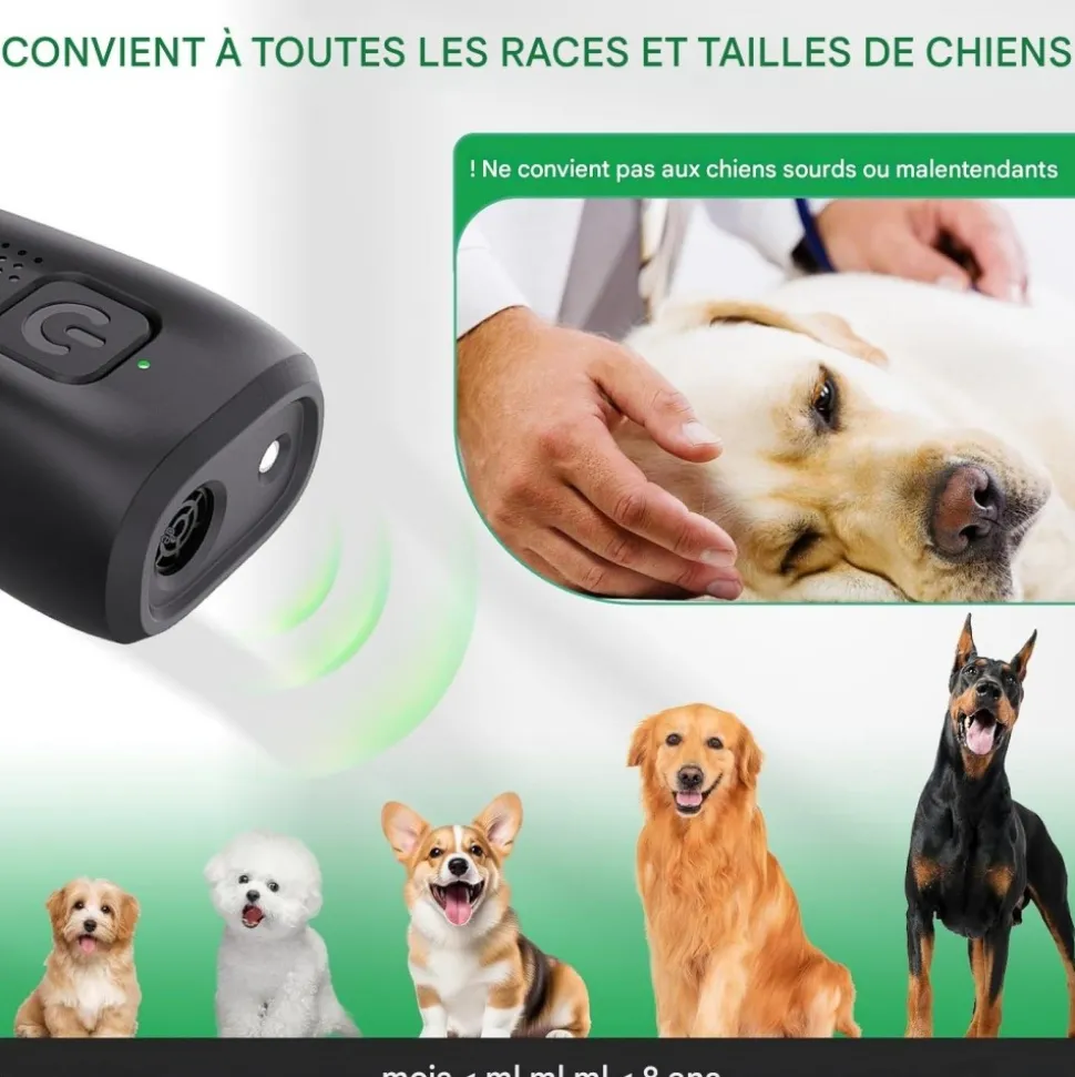 - Sécurité et humanité : Utilise des ondes sonores inaudibles pour humains, sans douleur ni dommage pour le chien.