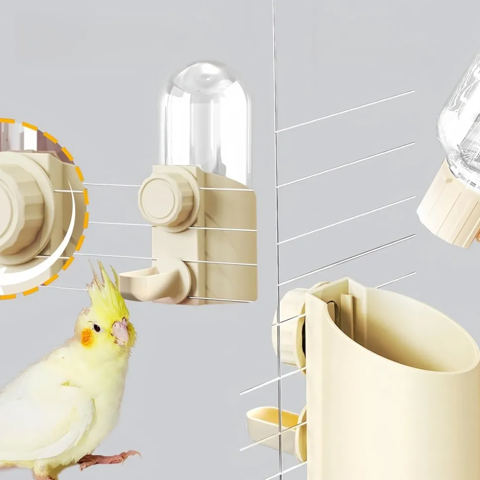 - ???? Installation facile : Il suffit de le clipser sur les barreaux de la cage à hauteur des yeux de l’oiseau. Son ajustement sûr maintient la bouteille en place, offrant une source d’eau fiable.
