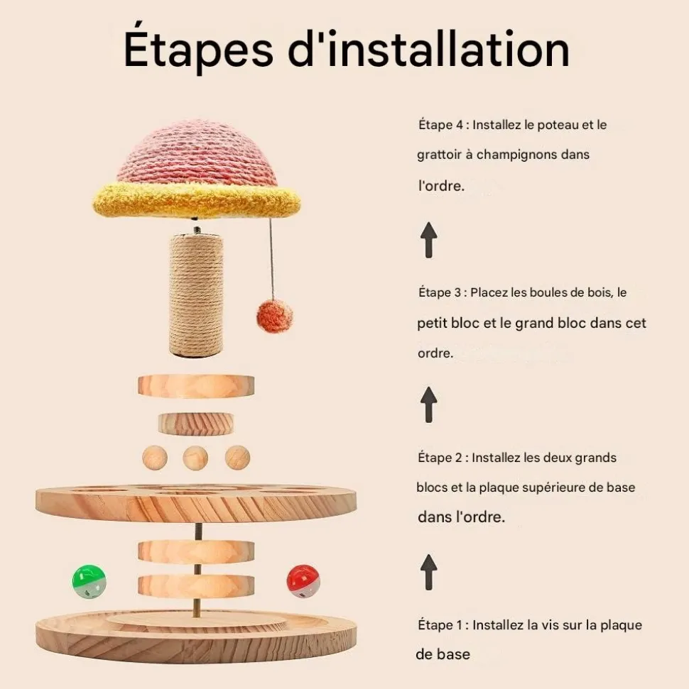 - Design unique : Le haut en forme de champignon en sisal rose avec une balle suspendue stimule le comportement de chasse des chats.