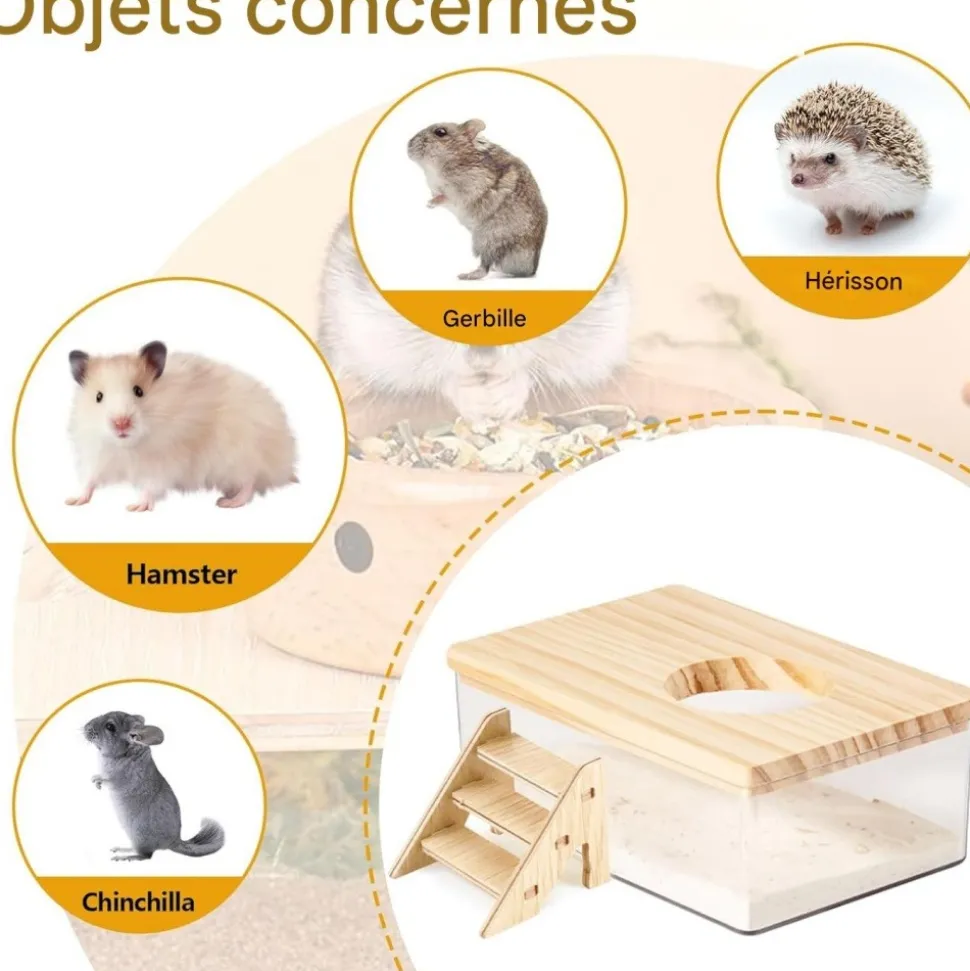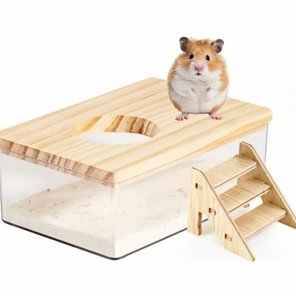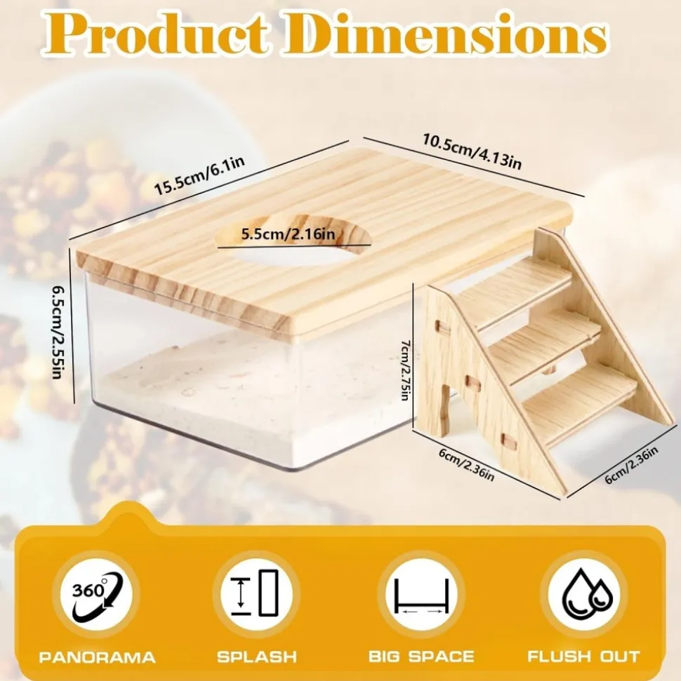 Confortable et sûr : Non seulement ce kit de bain de sable pour hamster est confortable et sûr, mais son design avancé a également en tête le bien – être des animaux de compagnie. Tous les composants de la salle de bain sont étroitement attachés ensemble, et le déflecteur en bois massif naturel sur le dessus améliore la stabilité de la structure. Ainsi, il est impossible pour le hamster de la renverser facilement, ce qui augmente sa sécurité.