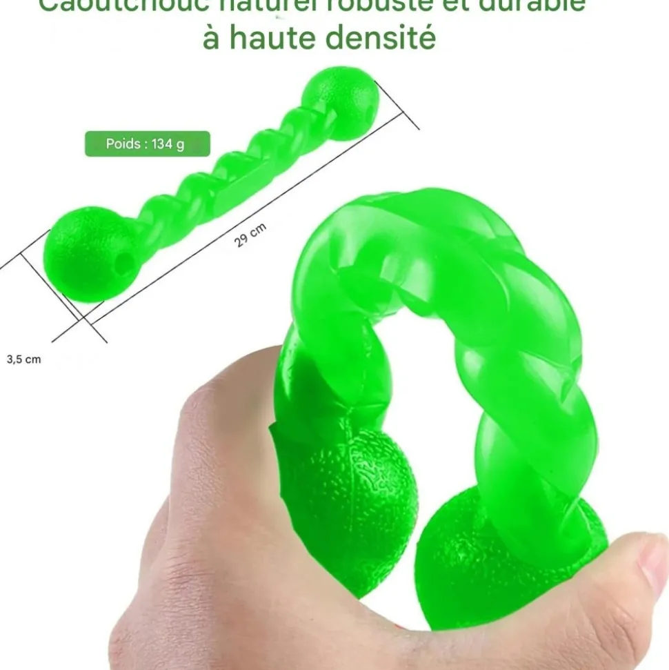 - Design innovant : Avec des boules rondes aux extrémités et une forme spirale au centre, attire l’attention du chien et nettoie mieux les dents.