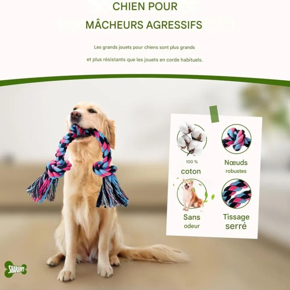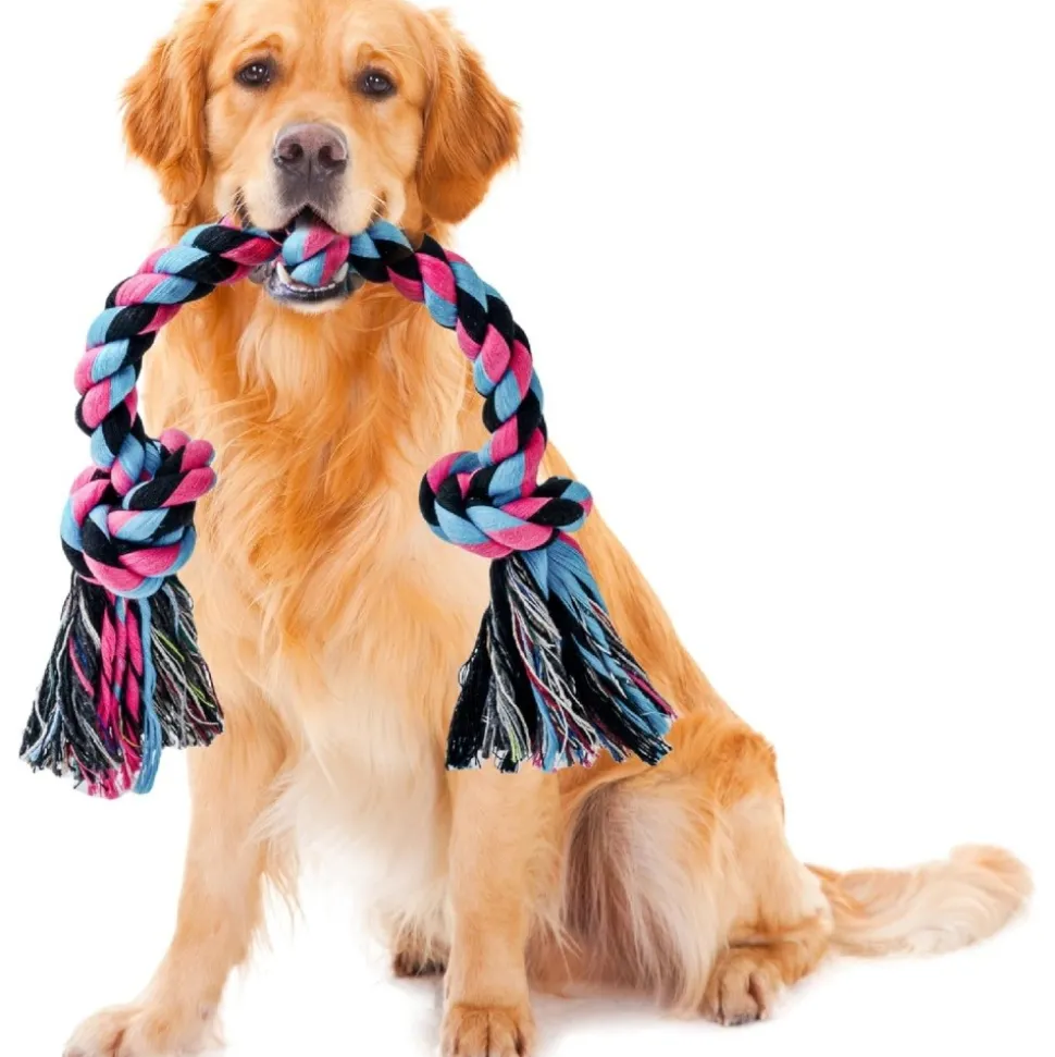 - Grande taille et résistance : Mesurant 90 cm avec 6 nœuds, en coton 100%, conçu pour les grands chiens et mâcheurs agressifs.