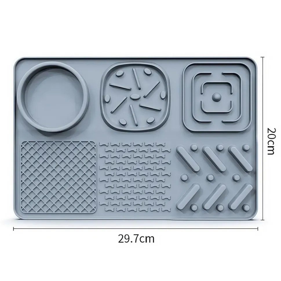 Imaginez que lorsque vous étalez des aliments délicieux sur ce tapis de léchage multifonctionnel pour chiens, le chien va excitément sortir sa langue et commencer à lécher avec délice. Sa conception multifonctionnelle lui permet non seulement d’être utilisé comme un simple tapis de léchage, mais aussi de ralentir la vitesse d’alimentation. Pendant le processus de léchage, le chien ne peut pas manger aussi rapidement qu’à l’ordinaire, mais doit savourer chaque bouchée lentement. Cela favorise sa digestion et augmente le plaisir de manger. De plus, le tapis est équipé d’une ventouse puissante qui peut le fixer fermement au sol ou au bol. Même si le chien léche avec force, il ne glissera pas facilement ni se déplacera, garantissant ainsi la stabilité de l’utilisation.