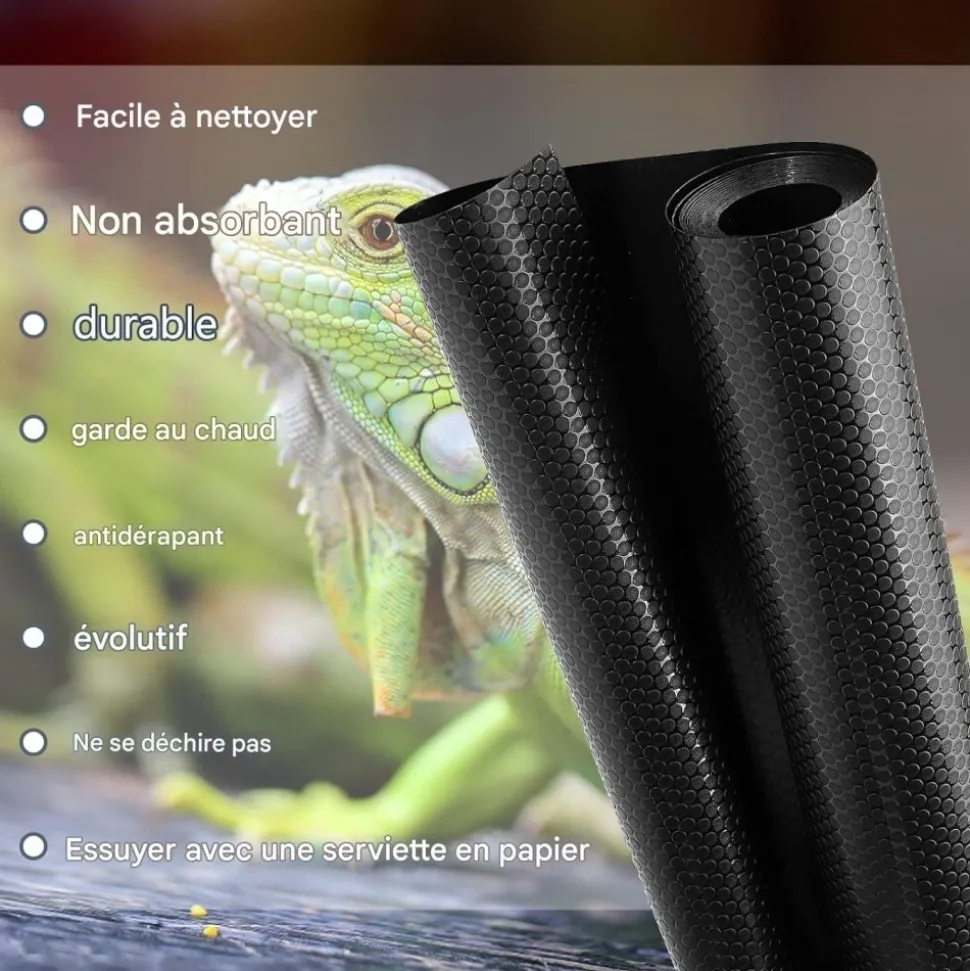 【Facile à nettoyer】: Le tapis pour reptiles ne retient pas les déchets, simplifiant le nettoyage. Secouez, essuyez ou rincez, puis séchez. Idéal pour litière de tortue et entretien des substrats.
