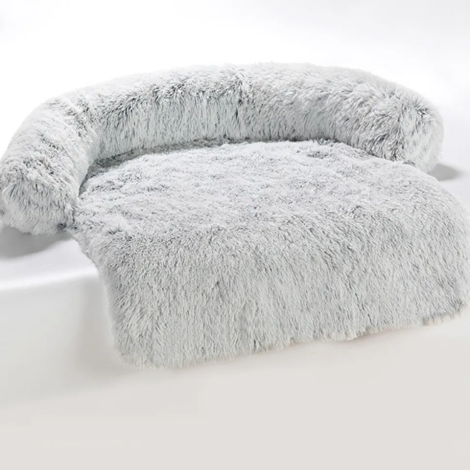 DOWNYPAWS - Tapis pour lit de chien en peluche, universel pour toutes saisons gris foncé 105 x 95 x 15 cm