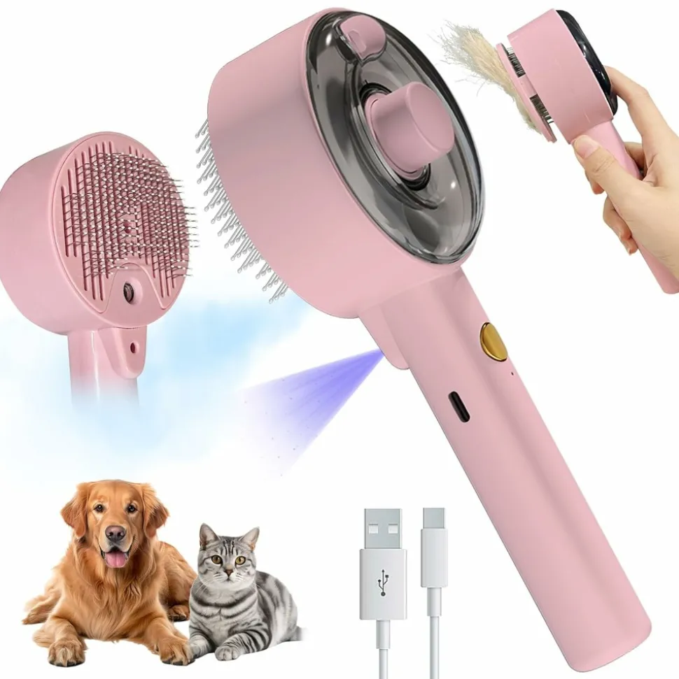 ???? BROSSE À VAPEUR 4 EN 1 MULTIFONCTIONNELLE ????Cette brosse à vapeur 2025 pour chats est multifonctionnelle. Elle élimine efficacement les poils lâches et les nœuds, offre un massage relaxant et une expérience de toilettage. La fonction vapeur (brume) contrôle les poils en évitant leur dispersion et réduit l’électricité statique, laissant le pelage lisse et propre.⚡️ BROSSE AMICALE POUR LES ANIMAUX ⚡️Avec des têtes de peigne douces et arrondies et des poils de brosse en acier inoxydable pliés à 140°, cette brosse assure une expérience de toilettage en douceur, protégeant la peau de votre animal. Elle pénètre profondément dans le pelage pour éliminer le sous – poil et les poils lâches. Ajoutez un après – shampooing à l’eau pour améliorer la douceur et la brillance du pelage.???? MODES DE PULVÉRISATION AJUSTABLES ET ÉLIMINATION FACILE DES POILS ????Avec deux modes de pulvérisation ajustables, vous pouvez choisir l’intensité de la brume en fonction du type de poil de votre animal. Une pression prolongée active la lumière violette pour un nettoyage approfondi. Le bouton d’élimination des poils en un clic facilite le nettoyage après le toilettage.???? QUALITÉ ET CONFORT D’UTILISATION ????Fabriquée avec un corps en plastique ABS durable et un peigne en acier inoxydable, elle est conçue pour durer. Le couvercle transparent du réservoir d’eau permet de surveiller les niveaux d’eau. La fonction vapeur s’arrête automatiquement après 12 minutes pour éviter la surchauffe et peut être redémarrée facilement.???? IDEAL POUR TOUS LES ANIMAUX À POILS – UN CADEAU PARFAIT ????Cette brosse à vapeur est conçue pour tous les chats (longs ou courts poils), chiens, lapins et autres animaux à poils. C’est un excellent cadeau pour les propriétaires d’animaux, permettant de maintenir le pelage de leurs bêtes en parfait état.