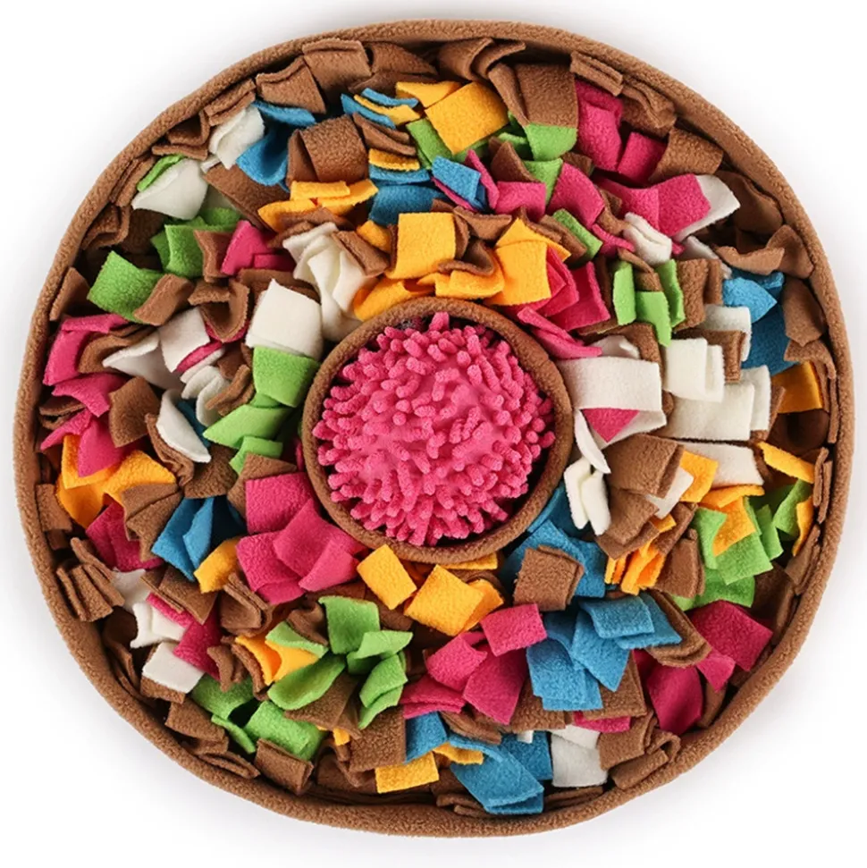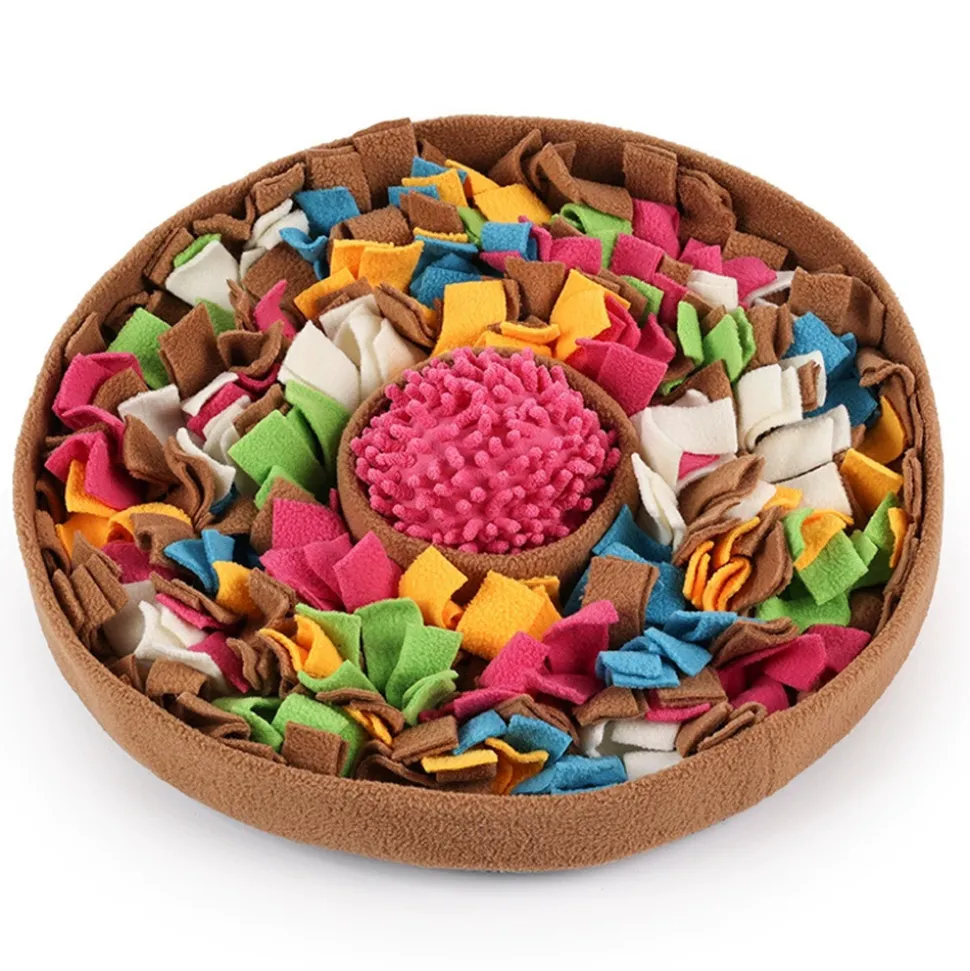 Découvrez le Bol d’Alimentation Interactif de DtopbuyAge pour vos chiens.**Alimentation lente** : Ce bol est conçu pour une alimentation lente, ce qui peut aider à prévenir l’ingurgitation et à stimuler la digestion de votre chien.**Tapis de reniflement** : Le tapis de reniflement inclus permet de stimuler l’odorat de votre chien. Il peut dissimuler des morceaux de nourriture, ce qui améliore les compétences de recherche olfactive de votre chien.**Tissu doux** : Le bol est fait d’un tissu en polyester doux, ce qui est agréable au toucher et ne peut pas abîmer la bouche de votre chien.**Jouet grinceur au centre** : Au centre du bol, il y a un jouet grinceur qui peut attirer l’attention de votre chien et l’amuser pendant qu’il mange.**Facile à nettoyer** : Le bol peut être lavé, ce qui facilite la maintenance et assure un environnement propre pour votre chien.