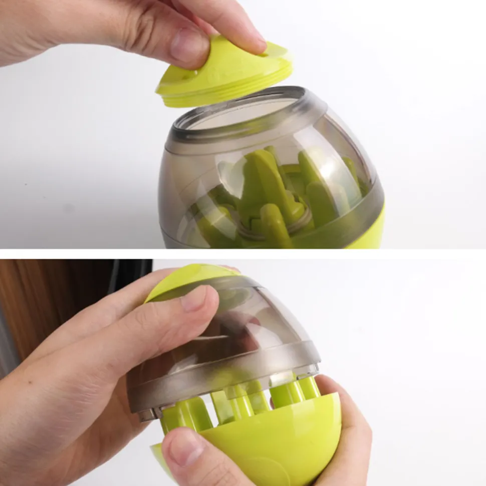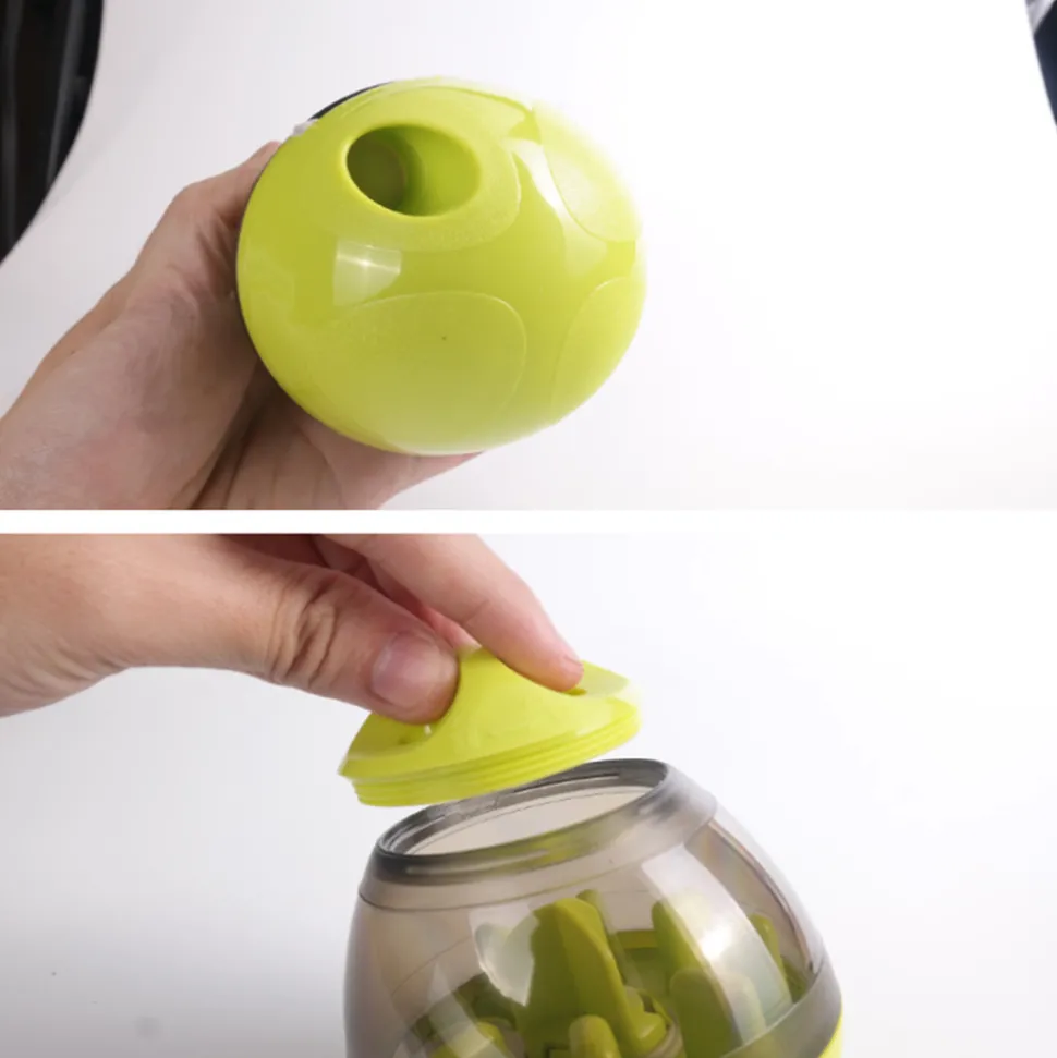 Découvrez le jouet-boule à graines pour chien DtopbuyAge! Ce jouet est conçu sous forme de bonhomme qui ne tombe pas, offrant une expérience de jeu unique pour votre chéri. Il est doté d’un dispositif de « labyrinthe » à colonnes amortissantes à l’intérieur. Chaque morceau de croquettes ou de snacks doit traverser de nombreux obstacles avant d’arriver à la bouche de votre chien. Cela augmente considérablement la difficulté et la durée de la « chasse » de votre chien par rapport aux jouets ordinaires.Le jouet est également équipé d’un élément amovible réglable. Il peut s’adapter à différents types de snacks et croquettes pour animaux de compagnie, tout en commandant la vitesse et la difficulté de sortie des aliments.Pour charger les snacks, il suffit d’ouvrir le couvercle supérieur. Vous pouvez facilement ajouter des aliments pendant les moments d’interaction avec votre chien. Le grand et rond couvercle supérieur est confortable à ouvrir et évite que le jouet ne soit endommagé par les mordilles de votre chien ou que votre chien ne soit blessé.Il y a également trois trous d’aération au sommet. Le nez sensible de votre chien peut facilement sentir les aliments qu’il désire.