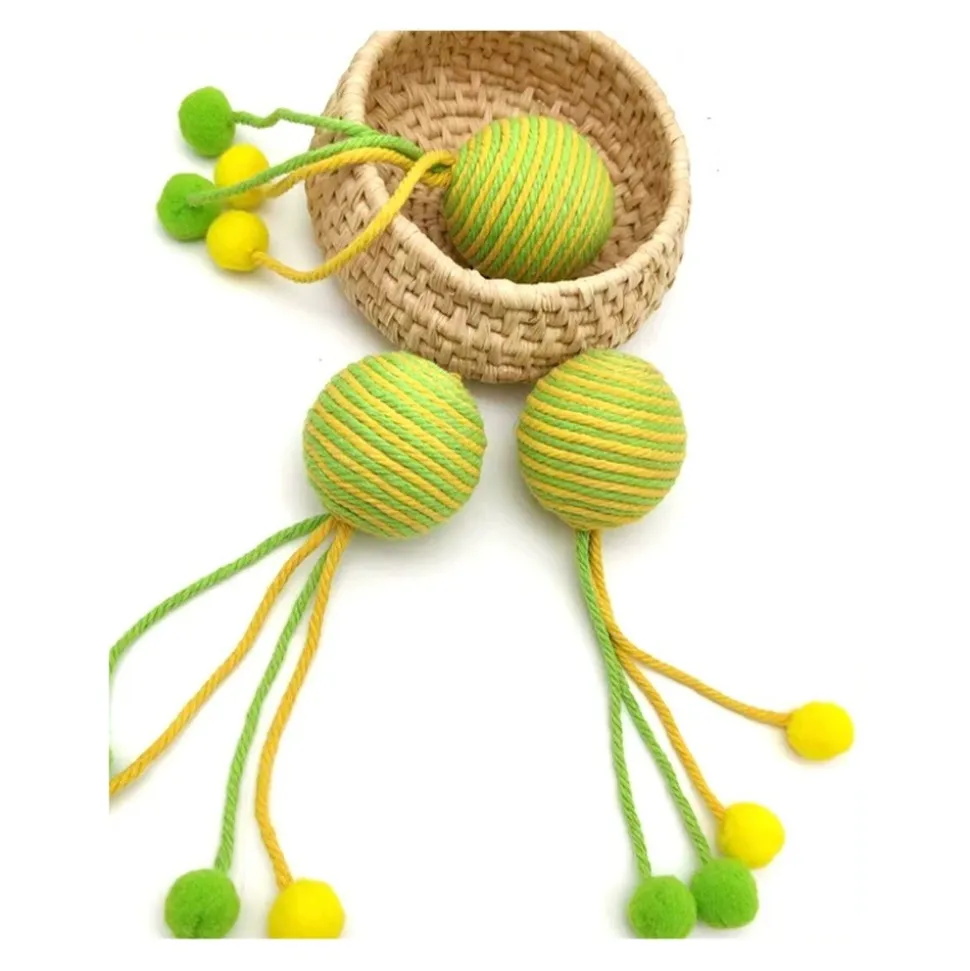 ???? Voici des incroyables jouets pour chats de la marque DtopbuyAge !???? **Combinations variées**Il existe trois combinaisons pour vous permettre de choisir : corde de coton avec bois de multiflorum, corde de coton avec galles de fruits et corde de coton avec boules de coton. Chaque combinaison offre un nouveau plaisir pour votre chat.???? **Douceur et sécurité**Le ballon de laine est extrêmement doux et ne cause aucun dommage aux dents de votre chat. Vous pouvez vous sentir tranquille en laissant votre chat jouer avec.???? **Léger et résistant**Ces jouets sont légers, faciles pour votre chat à manipuler, et très résistants à la morsure. Ils peuvent résister aux mordilles enthousiastes de votre félin.???? **Broyage des dents et hygiène**Ils sont idéaux pour aider votre chat à broyer ses dents et maintenir une bonne hygiène dentaire. Cela peut réduire les problèmes dentaires potentiels.???? **Interaction amusante**Avec leur sonnette qui sonne et leur aspect attrayant, ils stimulent l’interaction entre vous et votre chat. Que ce soit en vous amusant ensemble ou en laissant votre chat s’amuser seul, ces jouets sont une excellente option.Mesure : 15 cm de long, ce qui est sûr et rassurant. ????????**Dimensions et poids**Longueur : 15.2 cm.