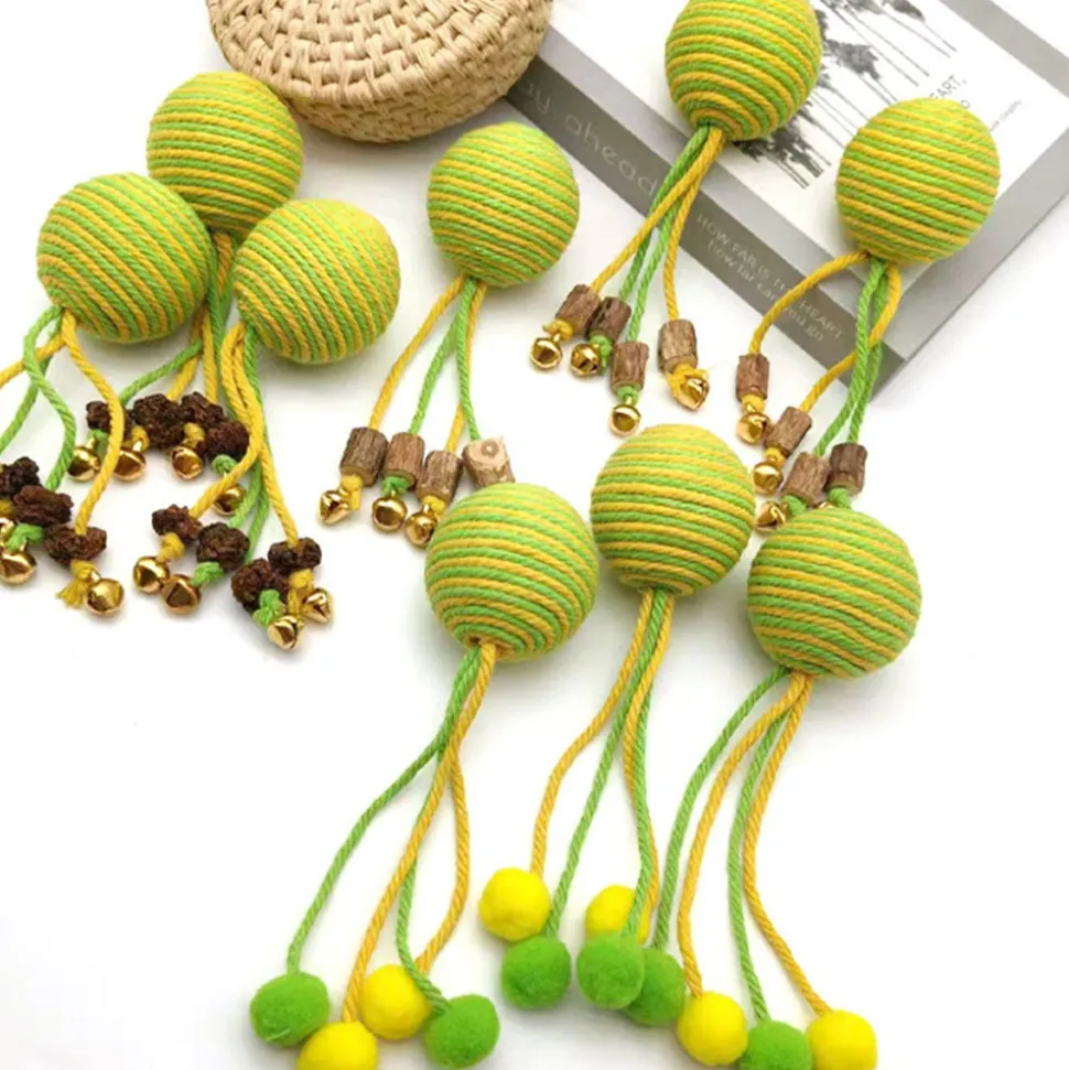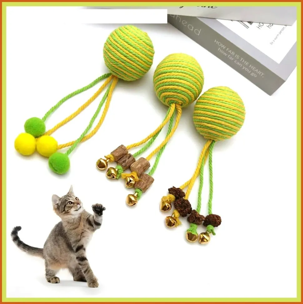 ???? Voici des incroyables jouets pour chats de la marque DtopbuyAge !???? **Combinations variées**Il existe trois combinaisons pour vous permettre de choisir : corde de coton avec bois de multiflorum, corde de coton avec galles de fruits et corde de coton avec boules de coton. Chaque combinaison offre un nouveau plaisir pour votre chat.???? **Douceur et sécurité**Le ballon de laine est extrêmement doux et ne cause aucun dommage aux dents de votre chat. Vous pouvez vous sentir tranquille en laissant votre chat jouer avec.???? **Léger et résistant**Ces jouets sont légers, faciles pour votre chat à manipuler, et très résistants à la morsure. Ils peuvent résister aux mordilles enthousiastes de votre félin.???? **Broyage des dents et hygiène**Ils sont idéaux pour aider votre chat à broyer ses dents et maintenir une bonne hygiène dentaire. Cela peut réduire les problèmes dentaires potentiels.???? **Interaction amusante**Avec leur sonnette qui sonne et leur aspect attrayant, ils stimulent l’interaction entre vous et votre chat. Que ce soit en vous amusant ensemble ou en laissant votre chat s’amuser seul, ces jouets sont une excellente option.Mesure : 15 cm de long, ce qui est sûr et rassurant. ????????**Dimensions et poids**Longueur : 15.0 cm.