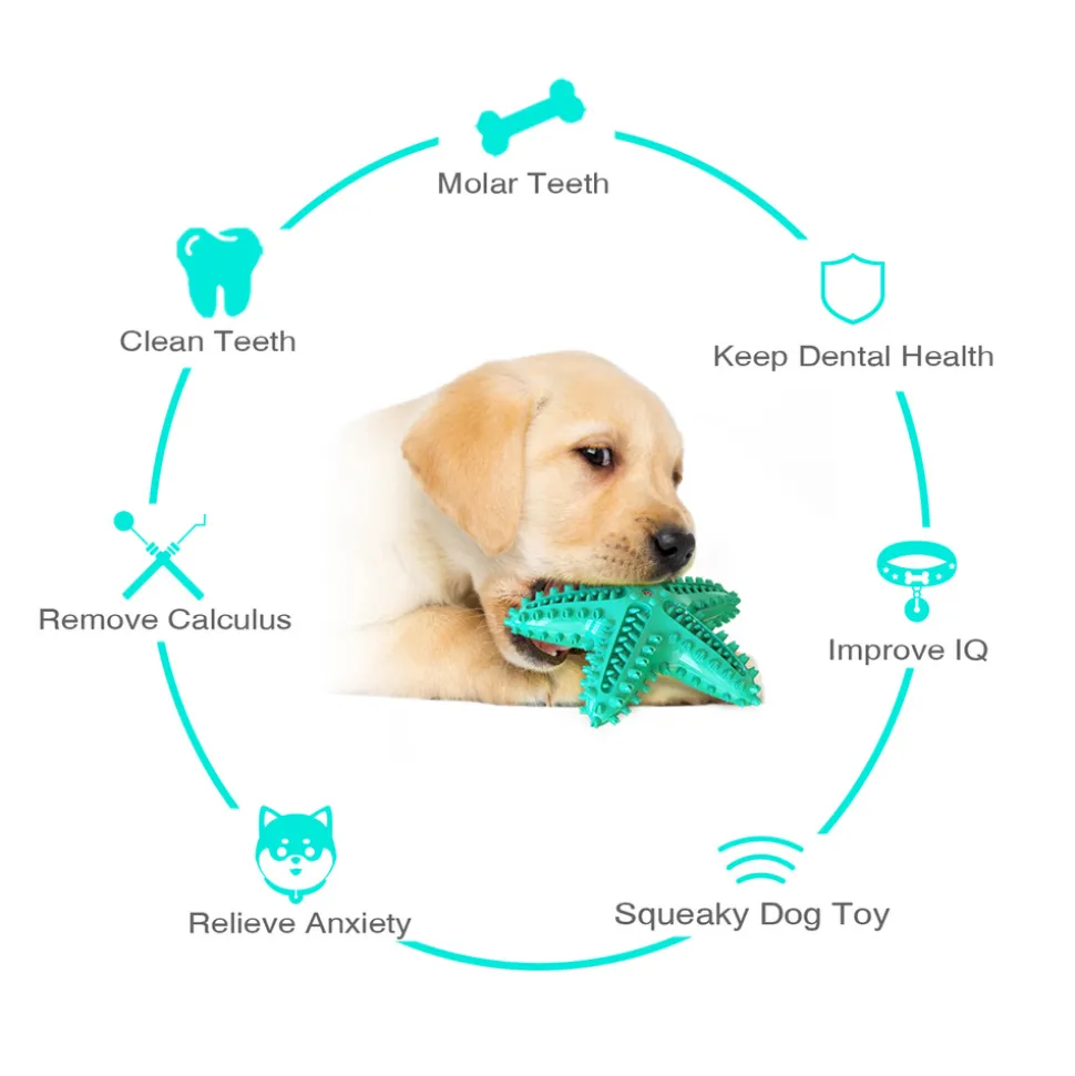 ???? JOUETS À MÂCHER POUR CHIOTS EN DÉVELOPPEMENT ????On peut appliquer de la pâte dentaire pour chien ou un attractif sur la surface de ce jouet. Cela permet de nettoyer mieux les dents du chien, qui peut ainsi « se brosser les dents » tout en jouant. ????⚡️ NETTOYAGE EFFECTIF DES DENTS ⚡️Ce nouveau jouet à mâcher pour chien est conçu de manière telle que lorsque le chien mord le produit, ses dents pointues entrent dans les cuves de nettoyage incurvées de l’allée de molaire. Cela permet un nettoyage efficace des dents de votre chiot. ???????? JOUET POUR CHIEN QUI PIEGE ????Un sifflet est placé au sommet de ce jouet. Lorsque le chien le mord, il produit un son qui attire son attention, augmente son intérêt pour le jeu et permet en même temps de nettoyer ses dents. ???????? MATÉRIEL SANTÉ ????Ce produit est fabriqué en TPR sain et résistant aux morsures. Il ne se déforme pas même si le chien joue avec longtemps. Il convient à tous les chiens, petits, moyens et grands, quelle que soit leur race. ????