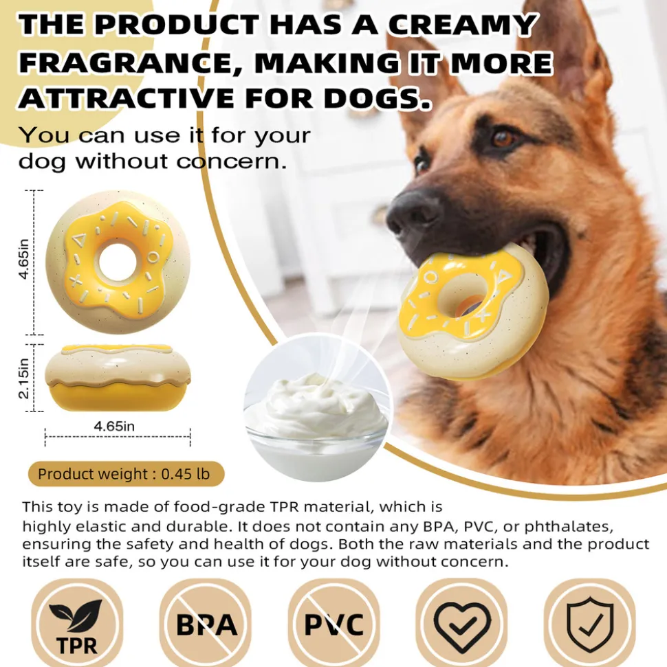 ???? JOUET INTERACTIF INDSTRUCTIBLE POUR CHIENS ????Ce jouet interactif amélioré est spécialement conçu pour les chiens de race agressifs. Fabriqué en plastique ABS extrêmement durable, entièrement naturel et robuste, il peut supporter même les mâcheurs les plus exigeants. ????⚡️ DESIGN UNIQUE EN FORME DE DONUT ⚡️Nos jouets indestructibles pour chien ont une forme de beignet unique, un cadeau parfait pour votre compagnon à quatre pattes. Les chiens de toutes races peuvent facilement saisir et jouer avec ces jouets résistants. La combinaison parfaite de résistance et de forme de beignet les rend idéaux pour les mâcheurs agressifs. ???????? JOUET MULTIFONCTION ????C’est un jouet multifonction et amusant pour les chiens. Il combine le grincement des dents, un son couineur, un flotteur et un entraînement de récupération. Les chiens peuvent l’utiliser comme jouet à mâcher ou pour des entraînements d’agilité, que ce soit à l’intérieur ou à l’extérieur. Cela leur permet de passer le temps et augmente leur bien – être. ???????? TAILLE ET SAVEUR ATTRACTIVE ????Taille : 11,8 x 5,5 cm. Ces jouets indestructibles conviennent à tous les chiens, petits, moyens et grands. La saveur crémeuse unique apporte encore plus d’attraction et de plaisir à votre chouchou. ????