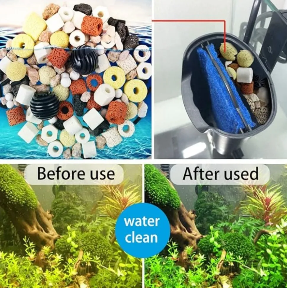 ????【Utilisation Polyvalente】 ???? Ces billes bio sont utilisables pour le filtrage supérieur, inférieur ou extérieur de différents types d’aquariums. Elles conviennent aussi bien aux systèmes de filtration biochimique en eau de mer qu’en eau douce. Parfaites pour les aquariums, étangs, cascades et fontaines. Une solution versatile pour tous vos besoins d’aquarium! ????