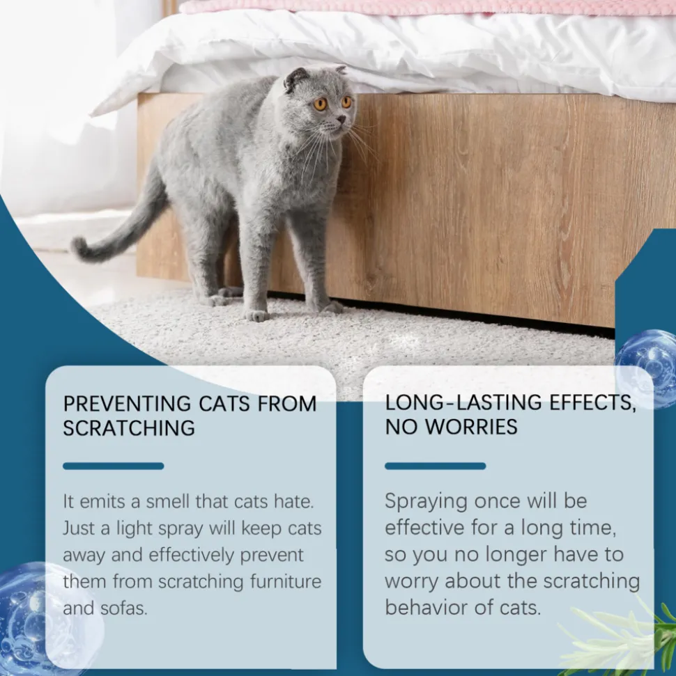 Découvrez notre spray répulsif anti – chat pour intérieur, un outil pratique pour maintenir un environnement propre et confortable sans avoir à vous soucier des chats qui montent sur le lit. Le contenu de 100 ml assure une utilisation durable.Ce spray est conçu pour repousser doucement les chats sans les blesser. Ses ingrédients sont sélectifs et ne présentent aucun danger pour la santé des chats ni pour votre famille. Il utilise des odeurs qui sont désagréables pour les chats, les incitant à éviter les zones traitées.En utilisant ce spray, vous pouvez facilement empêcher les chats d’accéder à votre lit, réduisant ainsi la saleté et les cheveux de chat. Cela est également utile pour protéger d’autres zones sensibles de votre maison.Le format de spray permet une application rapide et précise. Vous pouvez simplement vaporiser le produit sur le lit ou dans les zones où vous ne voulez pas que les chats s’approchent. Le volume généreux de 100 ml vous permet de traiter plusieurs fois les zones problématiques.Ne laissez pas les chats envahir les espaces où vous ne les voulez pas. Choisissez notre spray répulsif anti – chat pour intérieur pour un intérieur plus tranquille et propre.