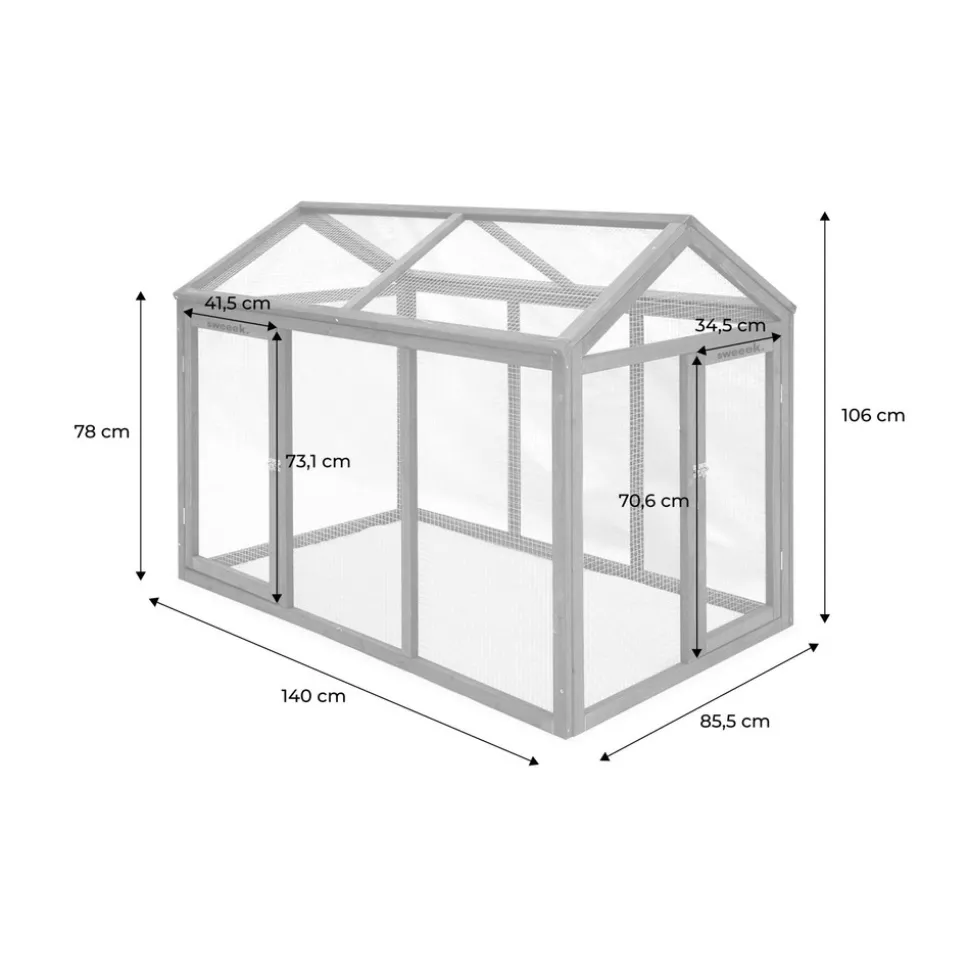 Les + produitGrand espaceSe fond à merveille dans votre jardinProtection contre les prédateursCaractéristiques techniques Adapté à 6 poules ou à des petits rongeurs Matière : Sapin Matière grillage : acier galvanisé 2 portes avec loquets Grande hauteur qui permet d’y entrer facilement pour le nettoyerLivré en kit avec notice de montage. Information complémentaire Cet enclos peut être utilisé comme extension pour votre poulailler, néanmoins, nous ne garantissons pas la compatibilité avec nos poulaillers.