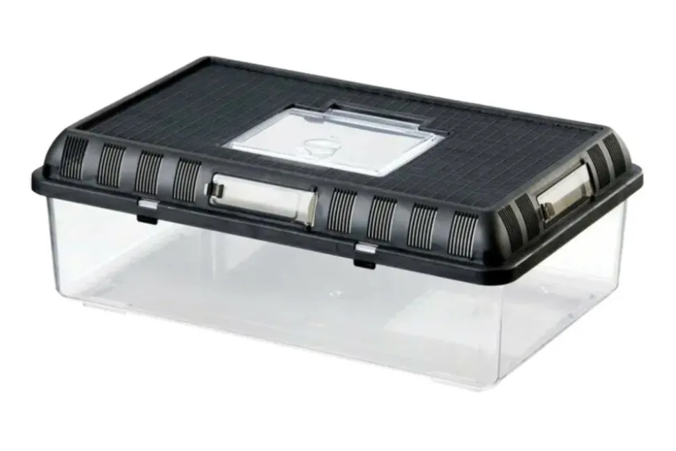 Terrarium en plastique léger, empilable et transparent, parfait pour l’élevage, le transport ou la présentation de geckos, jeunes serpent, amphibiens et invertébrés. Porte de nourrissage frontale pour limiter le stress et le risque d’évasion vos animaux.