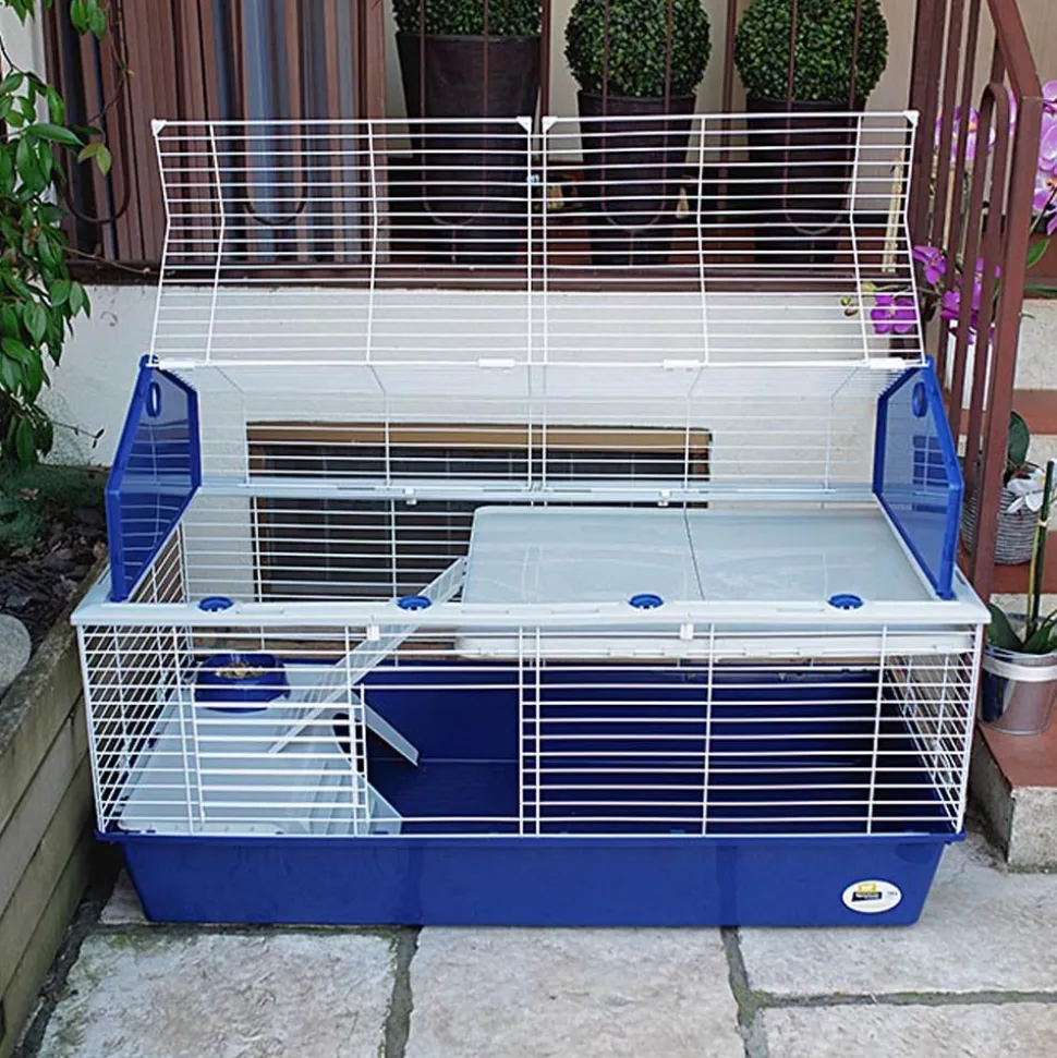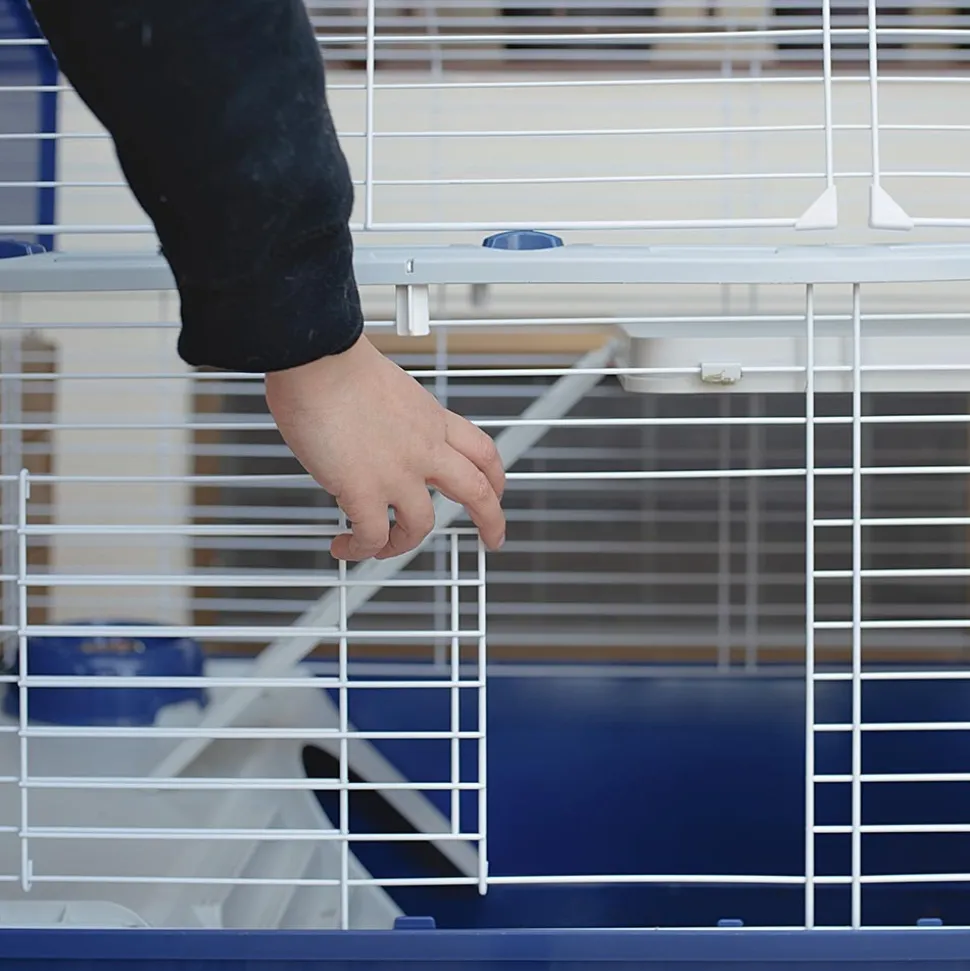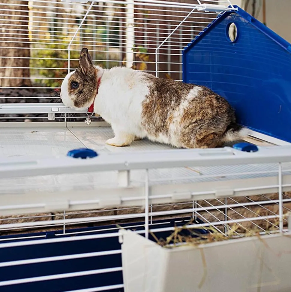 Ce clapier Barn 100 de la marque Ferplast est certainement l’habitat parfait pour vos amis rongeurs ! Cette cage, très spacieuse, permet à votre animal de compagnie de s’amuser avec son passe-temps préféré. Cette cage à lapins se compose d’une base et d’un haut séparables en décrochant les attaches sur les côtés, spécialement conçus pour assurer une bonne circulation de l’air et un environnement propre. Le toit surélevé avec des bandes blanches peut être complètement ouvert avec des attaches pratiques et une porte coulissante à l’avant pour faciliter l’entretien quotidien et sécuriser la sécurité de votre animal de compagnie. L’habitat se distingue par sa structure sur deux niveaux avec une maille vernie robuste. Deux bases spacieuses en résine thermoplastique recueillent efficacement la saleté et les restes de nourriture et d’excréments, les empêchant de sortir. ADe plus, ce clapier est livré avec des accessoires utiles comme une mangeoire, un bec verseur, un bol et une maison pour la détente, qui sont des éléments importants pour le plaisir de votre petit ami. Couleur : grisMatériau : Acier et plastiqueDimensions : 96 x 57 x 73 cm (L x l x H)Cage en forme de grange à 2 niveaux pour les lapinsUn toit surélevé et complètement ouvrable avec des clips de fixationAvec des escaliers en plastiqueMaille vernie avec une base en résine thermoplastiqueAvec une porte coulissante à l’avantBase et couvercle amoviblesFacile à nettoyer et à assemblerLa livraison comprend :1 x mangeoire1 x bec d’abreuvoir1 x bol1 x maison