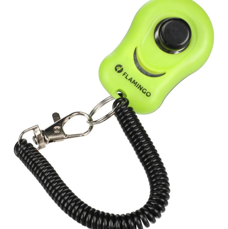 Clicker Xin Vert pour chienAvec le clicker Xin vous pouvez entraîner votre chien de manière amusante et confortable.Le câble flexible et le mousqueton en métal facilitent le transport du clicker partout où vous allez.De plus, il est équipé d’un bouton et d’un élastique pour un confort supplémentaire.Matériau : synthétique et métalCâble flexible et extensible avec mousqueton en métal à porter autour du poignet ou à attacher à la poche du pantalon, au sac à dos.Avec bouton-poussoir et élastique à attacher autour du doigtcouleur vertDimensions:6cm L x 4cm l x 2cm HClicker Xin Vert pour chienAvec le clicker Xin vous pouvez entraîner votre chien de manière amusante et confortable.Le câble flexible et le mousqueton en métal facilitent le transport du clicker partout où vous allez.De plus, il est équipé d’un bouton et d’un élastique pour un confort supplémentaire.Matériau : synthétique et métalCâble flexible et extensible avec mousqueton en métal à porter autour du poignet ou à attacher à la poche du pantalon, au sac à dos.Avec bouton-poussoir et élastique à attacher autour du doigtcouleur vertDimensions:6cm L x 4cm l x 2cm HFL-523547