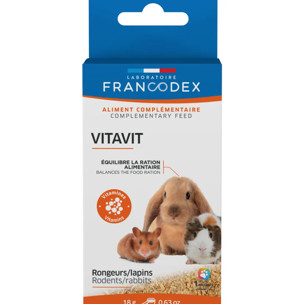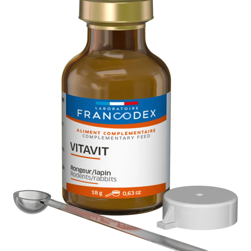 Pour le dynamisme et la vitalité de votre rongeur, optez pour Vitavit, riche en vitamines et dynamisant, il contribue à un bon équilibre alimentaire et compense les carences. Composé d’acides aminés de qualité c’est un complément alimentaire naturel qui répare les défauts d’un mauvais état du pelage. Disponible en flacon de 15 ml.