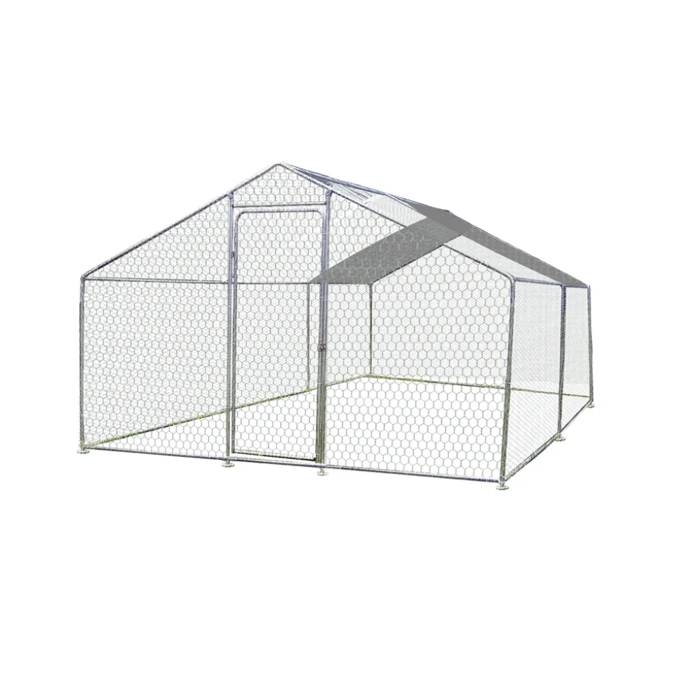 Enclos parc grillagé avec porte d’accès à structure composée de tube en acier galvanisé d’un diamètre de 25 mm recouverte d’un grillage en acier en losange de 4 cm galvanisé. Livré avec bâche de toit en polyester de 300 gr/m2 sur la partie arrière. Dimensions bâche 143 x 336 cm. Livré avec porte à fermeture par loquet, dimensions de la porte 186 x 85 cm. Dimensions enclos : 300 x 400 cm avec hauteur de paroi 1,33 m / hauteur faîtage 2,20 m. Convient aux modèles PO 1562 / PO 2070 / PO 2309 / NC 0711.01 / NC 0812.01 – Garantie : structure 2 ans bâche 1 an contre une usure anormale. A monter soi-même.