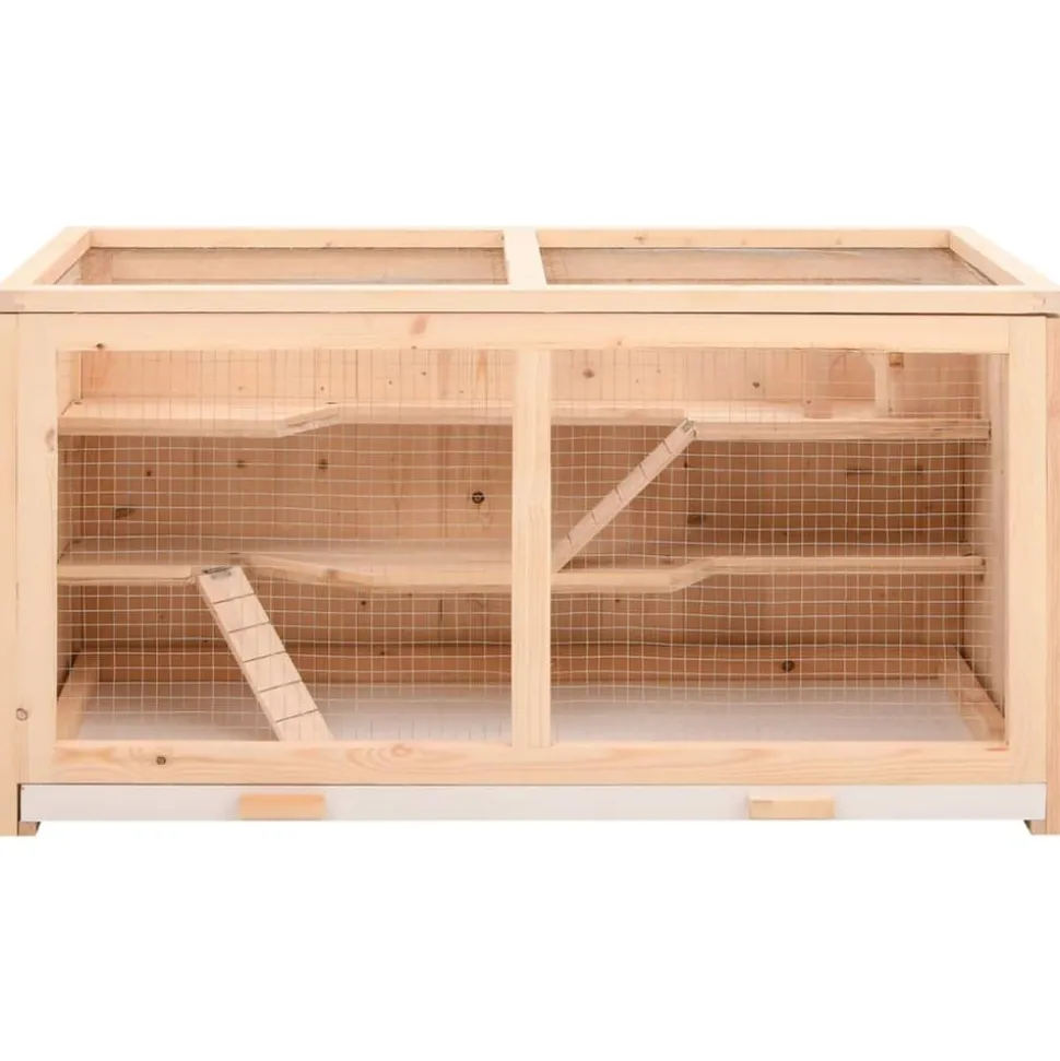 Cette cage à hamster en bois avec de multiples accessoires offre un endroit parfait pour que les petits animaux de compagnie puissent courir. Elle convient également aux petits gerbilles, souris, cochons d’Inde et autres animaux de taille similaire. Bois de sapin massif : le bois de sapin massif est un beau matériau naturel. Le bois de sapin ne se dessèche pas et ne se déforme pas lorsqu’il est exposé à l’humidité. Fabriquée en bois de sapin massif, la maison pour hamster est robuste et facile à nettoyer. Design en treillis métallique : le toit ouvrable est conçu avec un treillis métallique pour une bonne ventilation et une entrée facile. De plus, le treillis métallique à l’avant vous permet de regarder vos amis à fourrure jouer et se détendre dans leur nouvelle maison. Nettoyage facile : la cage à hamster en bois est dotée d’une porte avant et d’un plateau extractible pour faciliter le nettoyage. Matériau : bois de sapin massif (non traité), PVC, contreplaqué Dimensions totales : 89,5 x 45 x 45 cm (L x l x H) Dimensions intérieures : 80,5 x 40,5 x 40,5 cm (L x l x H) Dimensions du plateau : 80 x 37 x 3,5 cm (L x l x H) Taille de la maille : 1 x 1 cm (L x l) L’assemblage est requis