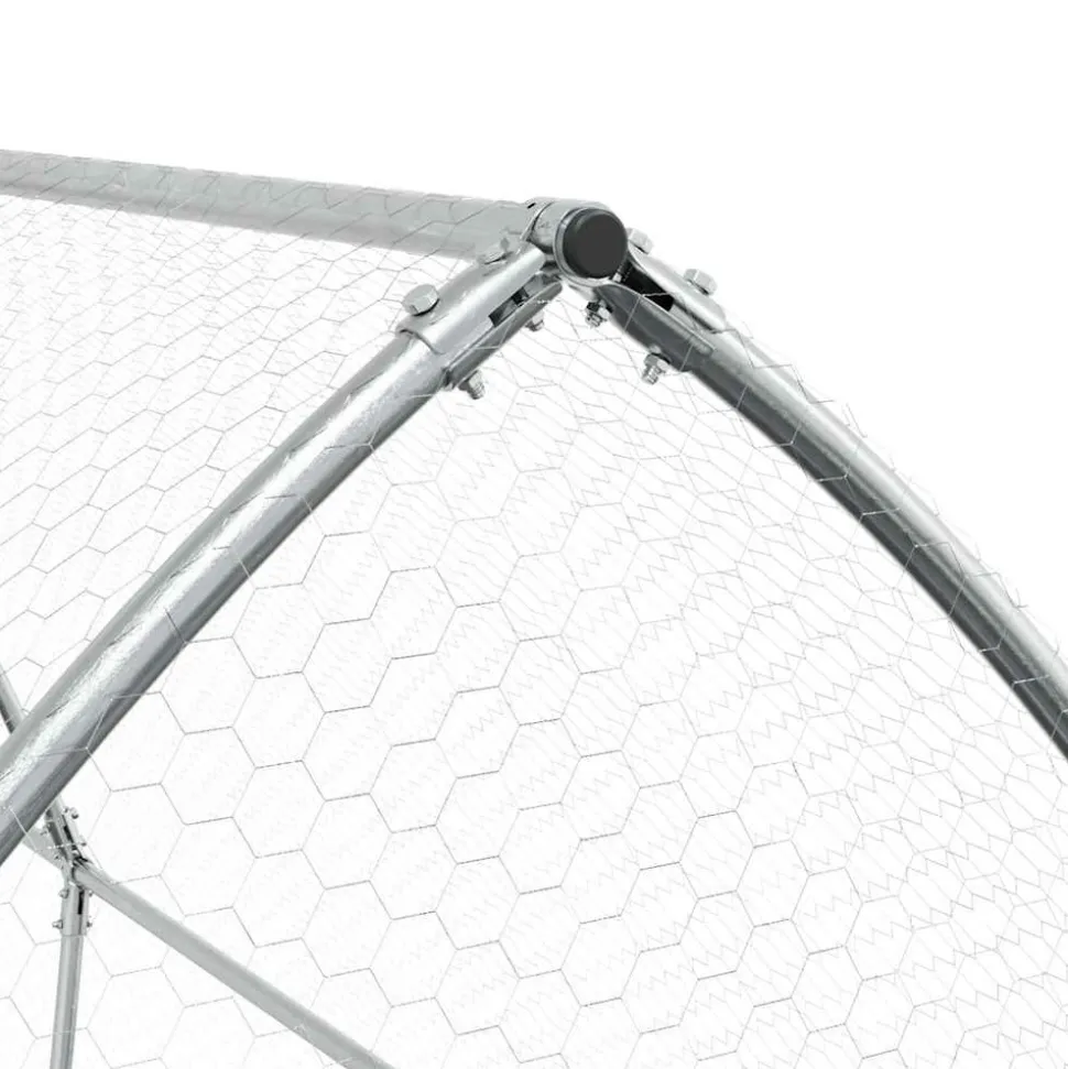 Ce poulailler pratique et spacieux est un choix parfait comme enclos d’extérieur pour le confort de vos poules, canards et autres petits animaux et les maintient à l’aise. Cadre durable et robuste : le poulailler est fabriqué en acier galvanisé. l’acier est un matériau exceptionnellement dur et solide. Il offre robustesse et stabilité. La galvanisation offre une meilleure protection contre la corrosion et est utile pour les produits qui seront utilisés à l’extérieur et dans des environnements difficiles. Grande espace d’activité : la cage à poulets offre à vos poules un vaste espace d’activité pour se promener facilement. En outre, elle convient également à d’autres petits animaux tels que les oiseaux, les lapins, les canards, les oies, etc. Sécurité supplémentaire : la porte à charnière avec un système de verrouillage verrouillable du poulailler d’entrée assure une sécurité supplémentaire à vos poules. Couleur : argenté Matériau : acier galvanisé Dimensions : 400 x 105 x 182 cm (l x P x H) Comprend une porte avec serrure Assemblage requis : oui