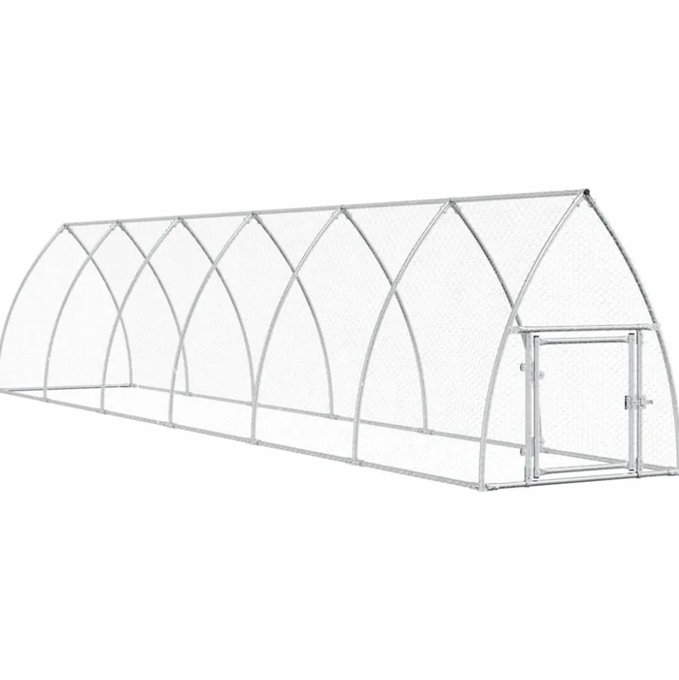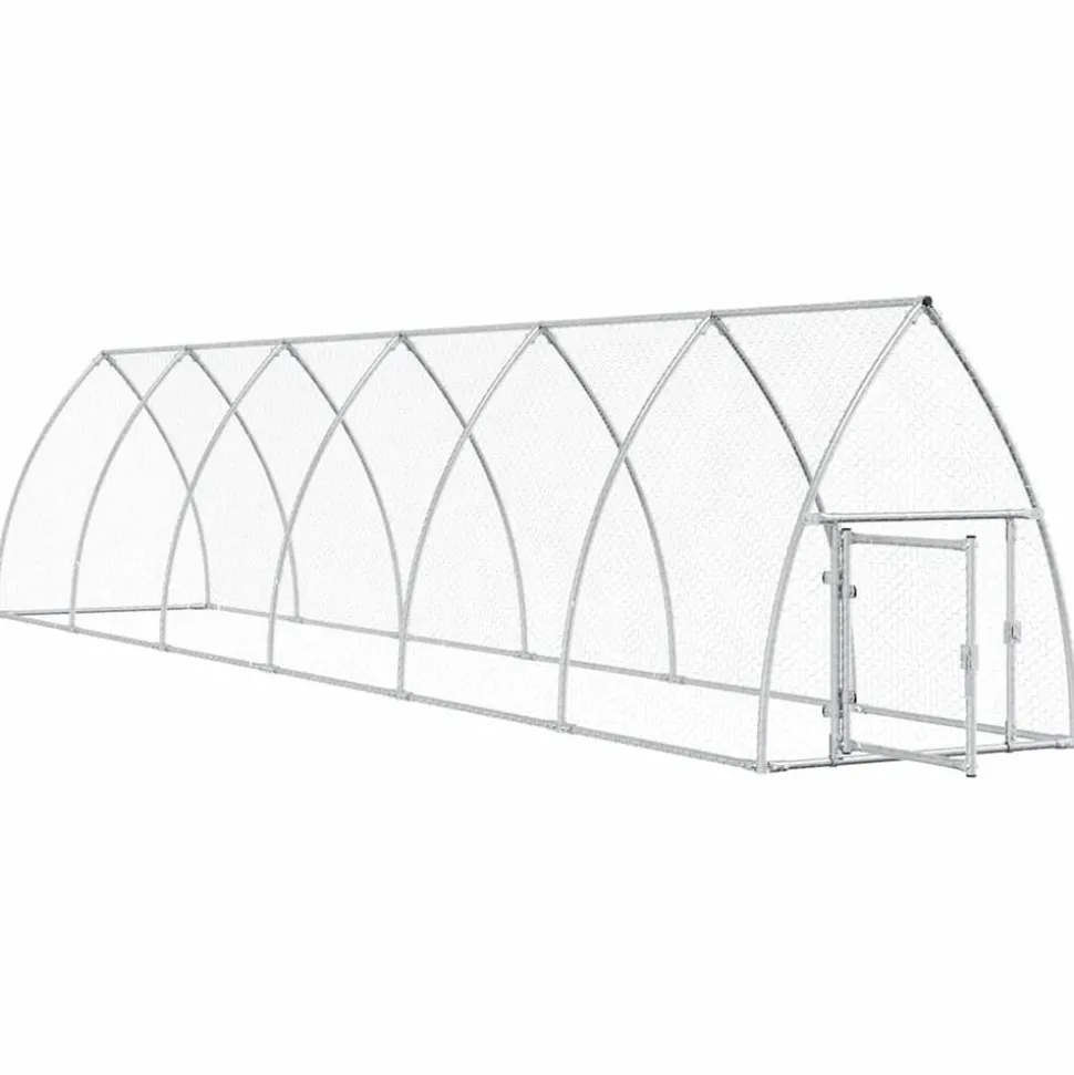 Ce poulailler pratique et spacieux est un choix parfait comme enclos d’extérieur pour le confort de vos poules, canards et autres petits animaux et les maintient à l’aise. Cadre durable et robuste : le poulailler est fabriqué en acier galvanisé. l’acier est un matériau exceptionnellement dur et solide. Il offre robustesse et stabilité. La galvanisation offre une meilleure protection contre la corrosion et est utile pour les produits qui seront utilisés à l’extérieur et dans des environnements difficiles. Grande espace d’activité : la cage à poulets offre à vos poules un vaste espace d’activité pour se promener facilement. En outre, elle convient également à d’autres petits animaux tels que les oiseaux, les lapins, les canards, les oies, etc. Sécurité supplémentaire : la porte à charnière avec un système de verrouillage verrouillable du poulailler d’entrée assure une sécurité supplémentaire à vos poules. Couleur : argenté Matériau : acier galvanisé Dimensions : 600 x 105 x 120 cm (l x P x H) Comprend une porte avec serrure Assemblage requis : oui