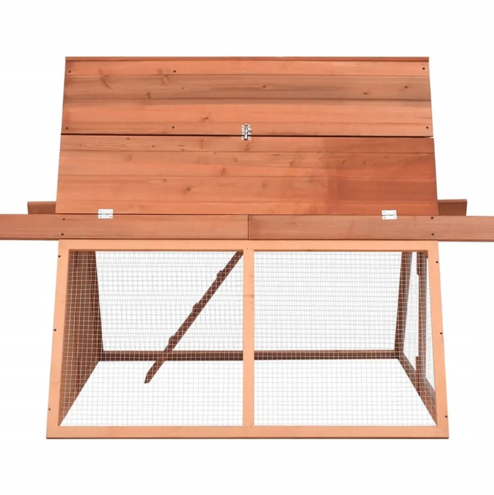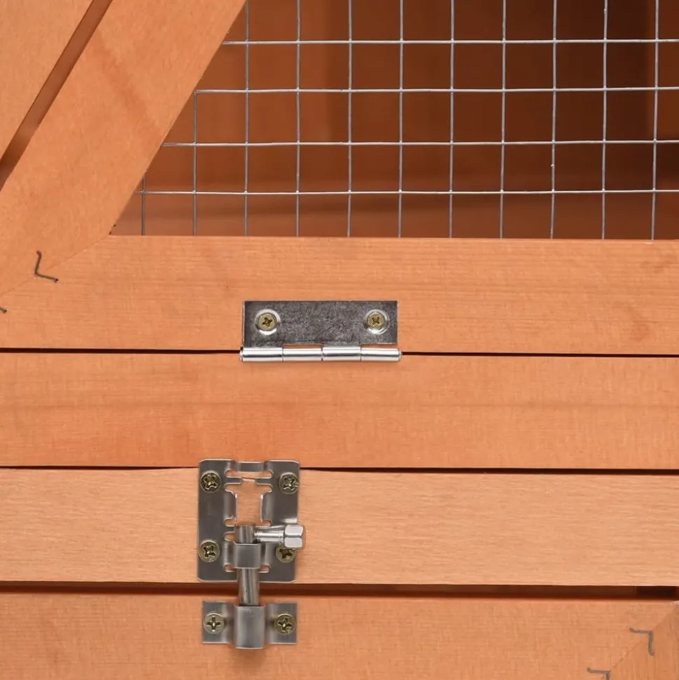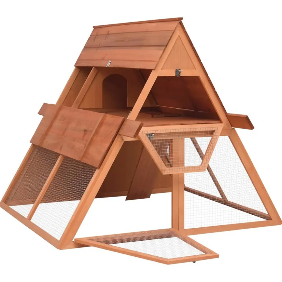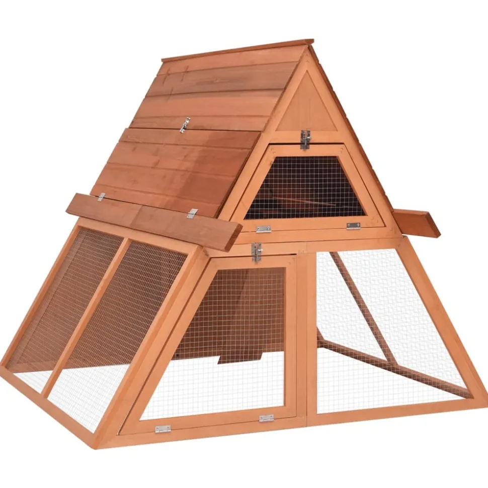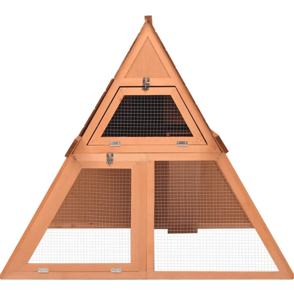 Ce clapier au design en forme de A offre un endroit confortable pour permettre aux petits animaux comme les lapins ou les poules de se détendre. La construction de treillis en fil de fer assure votre surveillance des animaux de compagnie et permet à vos animaux de compagnie d’avoir suffisamment d’air frais. Le clapier est construit avec un cadre en bois qui dure des années. Une rampe d’accès facile mène du niveau inférieur au niveau supérieur. Un plateau coulissant facilite le nettoyage. Les portes se ferment facilement et se verrouillent avec des loquets à glissière. Matériau : bois de sapin massif, contreplaqué, fer Dimensions : 152 x 127 x 109,5 cm (L x l x H) L’assemblage est requis