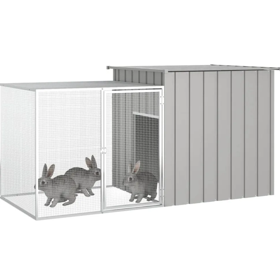 Offrez la sécurité et le confort à votre petit ami avec cette cage à lapins. Clapier tout-en-un : la cage polyvalente se compose d’une maison en acier et d’une cage grillagée à usages multiples : repos, jeu, exercice ou simplement maintien de la sécurité de vos petits animaux. Ce sera le paradis de jeu parfait pour vos lapins !Construction robuste : grâce à la construction robuste en acier galvanisé, cette maison pour lapin est durable et conçue pour durer. Sécurité supplémentaire : La porte à charnière avec un système de verrouillage du clapier à lapins extérieur assure une sécurité supplémentaire à vos lapins. Design ventilé : le parc pour lapin a un design en maille, ce qui le rend bien ventilé pour garder l’air frais et propre. Ainsi, l’enclos pour lapins est bénéfique pour la santé de vos amis à fourrure bien-aimés. Remarque : Chaque produit est livré avec un manuel de montage dans la boîte pour un montage facile. Couleur : gris Matériau : acier galvanisé Dimensions : 200 x 91 x 100 cm (l x P x H) Dimensions de la porte : 46,5 x 85 cm (l x H)