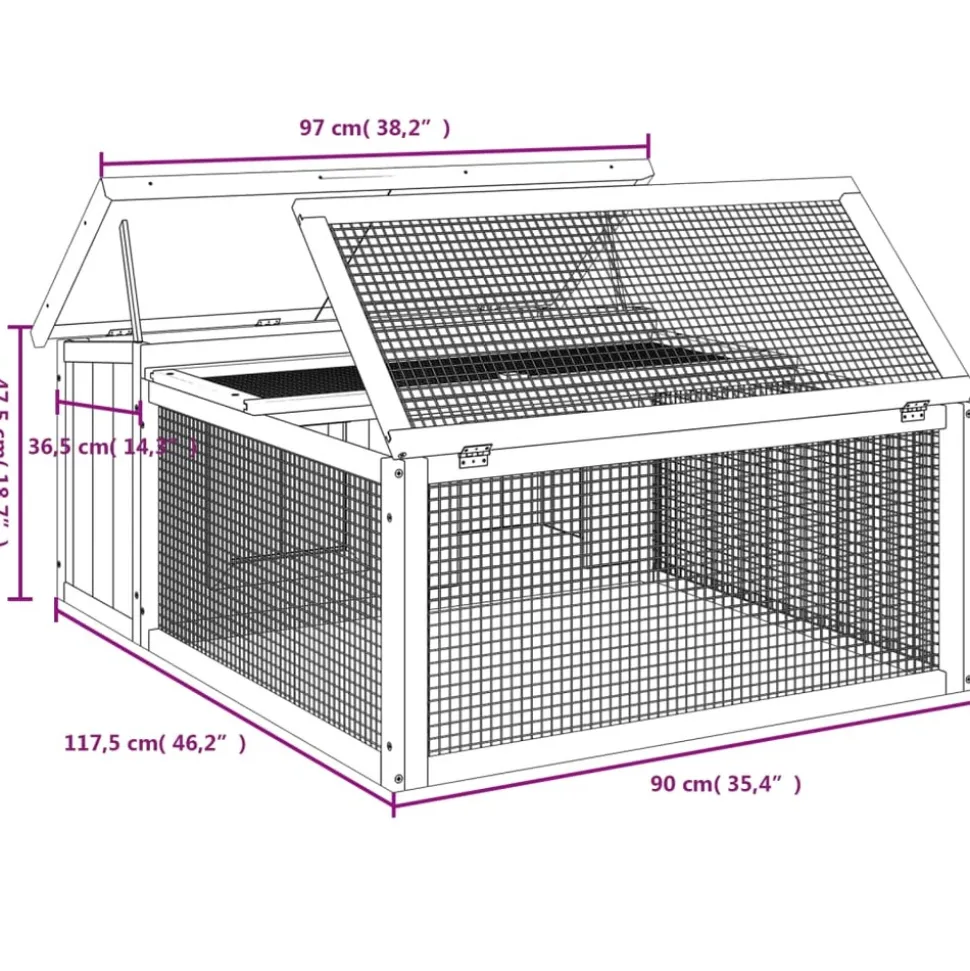 Ce clapier avec un centre d’activités spacieux et une aire de couchage, offre un endroit sûr et confortable où vos amis à fourrure, tels que les lapins, les cochons d’Inde, les petits canards et autres petits animaux de compagnie, peuvent s’amuser et se reposer. Construction robuste : Ce clapier d’extérieur est fabriqué en bois de pin massif, ce qui contribue à une construction robuste. Le bois de pin est un beau matériau naturel. Son grain droit et les nœuds donnent au matériau son aspect caractéristique et rustique. Dotée d’un toit résistant à l’eau, la cage à lapin est parfaite pour une utilisation en extérieur. Paroi grillagée : la cage à lapin est équipée de parois grillagées qui évitent les méfaits et les accidents inattendus. De plus, elles vous permettent d’observer vos lapins tous les jours et leur garantissent un large champ de vision et suffisamment d’air frais. Centre d’activités à plusieurs niveaux : dotée d’un nichoir et d’une aire de jeu spacieuse, la maison des lapins offre suffisamment d’espace pour que vos petits animaux de compagnie puissent jouer et se déplacer librement. Couleur : moka, blanc, vert Matériau : bois de pin massif, contreplaqué Dimensions : 117,5 x 97 x 47,5 cm (L x l x H) L’assemblage est requis