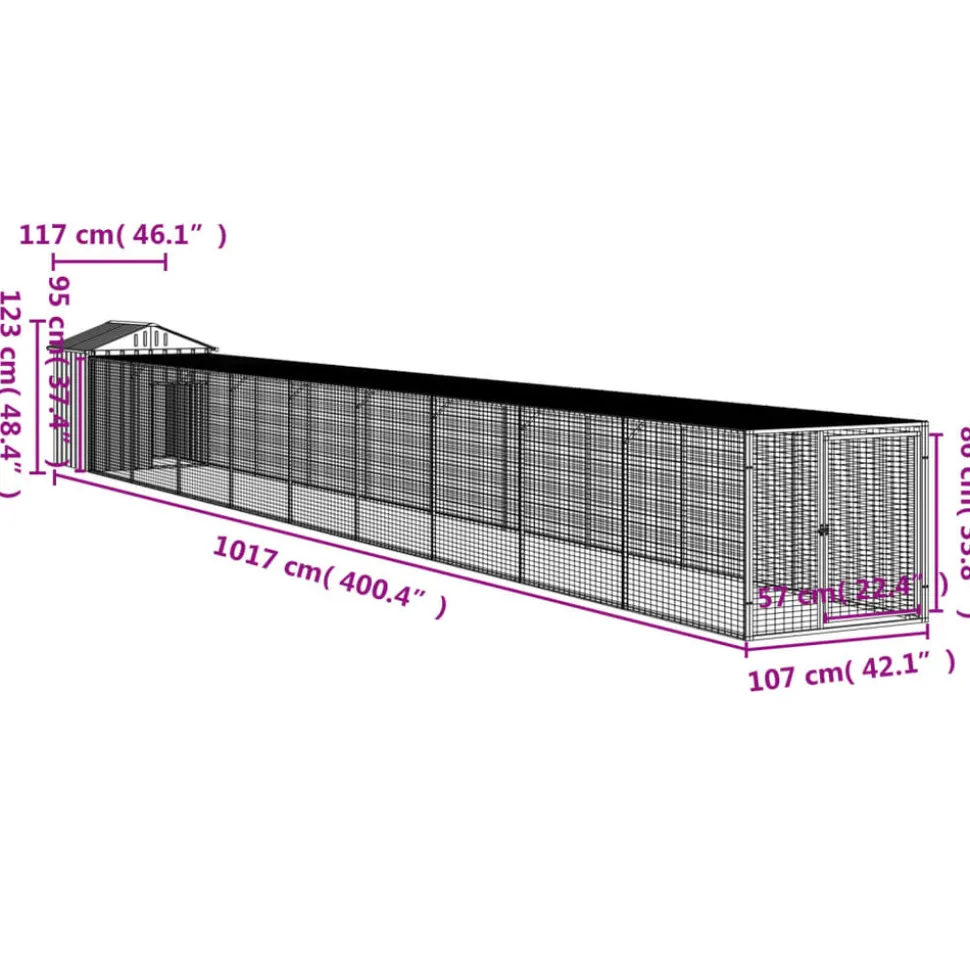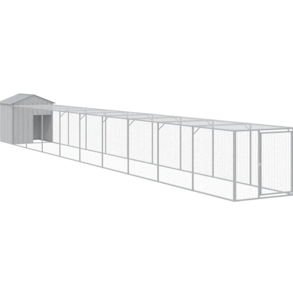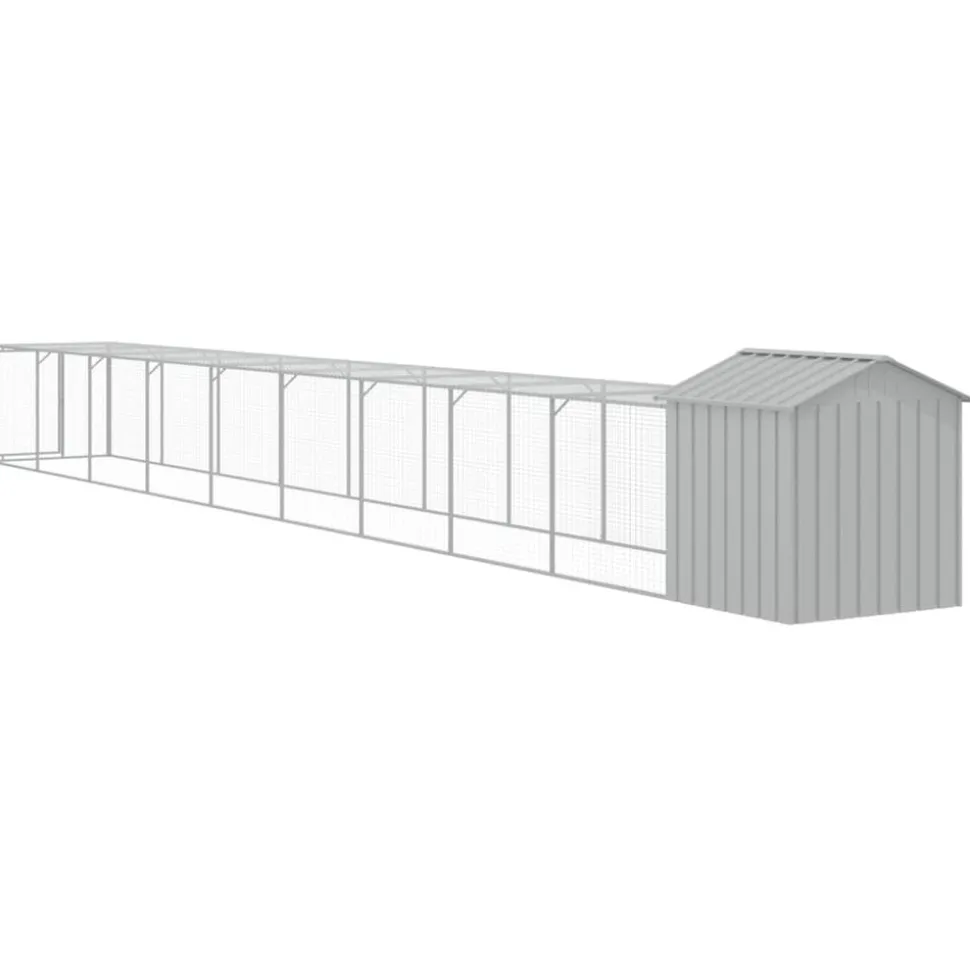 Ce poulailler avec cour est un choix parfait pour vos poulets, poules et autres petits animaux et les maintient à l’aise. Utilisation polyvalente : combiné avec la cour étendue, le poulailler polyvalent offre beaucoup d’espace à vos poules. Il présente de multiples utilisations : jouer, faire de l’exercice ou simplement garder vos poules en sécurité. Ce sera le paradis de jeu parfait pour vos animaux !Construction durable : grâce à sa construction robuste en acier galvanisé, le poulailler est durable et fait pour durer. Conception en maille : la conception en maille du poulailler aide à prévenir les méfaits et les accidents inattendus tout en permettant la ventilation. Toit pratique : le toit du poulailler protège les poulets du soleil, de la pluie, de la neige et d’autres conditions météorologiques. Accès pratique : il y a une entrée à la maison pour animaux et une porte avec un loquet sur la cour prolongée, les deux facilitant l’entrée et la sortie. Couleur : gris clair Matériau : acier galvanisé Dimensions totales : 117 x 1017 x 123 cm (l x P x H) Poulailler : Dimensions extérieures : 117 x 103 x 123 cm (l x P x H) Dimensions intérieures : 104 x 90 x 120 cm (l x P x H) Taille de l’entrée : 47 x 70 cm (l x H) Cour étendue : Dimensions extérieures : 107 x 919 x 95 cm (l x P x H) Dimensions intérieures : 104 x 916 x 92 cm (l x P x H) Dimensions de la porte : 57 x 86 cm (l x H) L’assemblage est requis La livraison contient : 1 x poulailler 1 x cour étendue