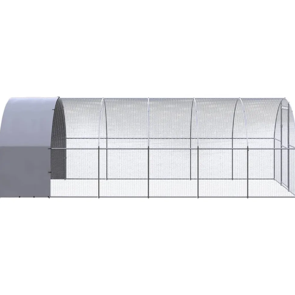 Ce poulailler pratique et spacieux est un choix parfait comme enclos d’extérieur pour le confort de vos poules, canards et autres petits animaux. Cette cage à poules est fabriquée en acier galvanisé, ce qui rend la cage stable, durable et facile à nettoyer avec un chiffon humide ou de l’eau du robinet pour un entretien facile. Elle est dotée d’un toit en polyéthylène résistant à l’eau. Le poulailler offre suffisamment d’espace pour vos volailles. De plus, grâce au grillage, vous pouvez garder un œil sur vos animaux de compagnie en tout temps. Couleur : argenté et gris argenté Matériau : acier galvanisé, PE (polyéthylène) Dimensions totales : 3 x 6 x 2 m (l x P x H) Toit résistant à l’eau L’assemblage est requis La livraison contient : 1 x poulailler 2 x cadre d’extension 1 x toit