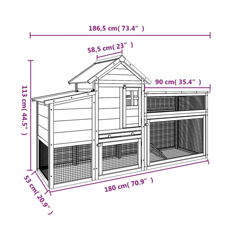 Le poulailler en bois offre un endroit confortable et accueillant pour les petits animaux, en particulier les poules, et leur permet de se détendre. Bois de pin massif : le bois de pin massif est un matériau naturel magnifique. Le bois de pin a un grain droit et les nœuds donnent au matériau son aspect caractéristique et rustique. Parc à poules tout-en-un : comprenant un grand nichoir, une aire de repos et une rampe d’accès, la cage à poules offre toujours suffisamment d’espace pour que les poules puissent s’adonner à leurs activités en toute liberté. Clôtures en grillage : le poulailler est équipé de clôtures grillagées respirantes, protégeant les poulets ou autres animaux des prédateurs extérieurs. Toit résistant à l’eau : le toit résistant à l’eau de ce poulailler offre à vos animaux de compagnie un environnement chaud, sec, sûr et confortable. Large utilisation : le nichoir à poules convient également à d’autres animaux, tels que les lapins, les canards, les oies et les oiseaux, etc. Couleur : moka Matériau : bois de pin massif, contreplaqué Dimensions : 186,5 x 58,5 x 113 cm (L x l x H) Comprend un plateau extractible L’assemblage est requis