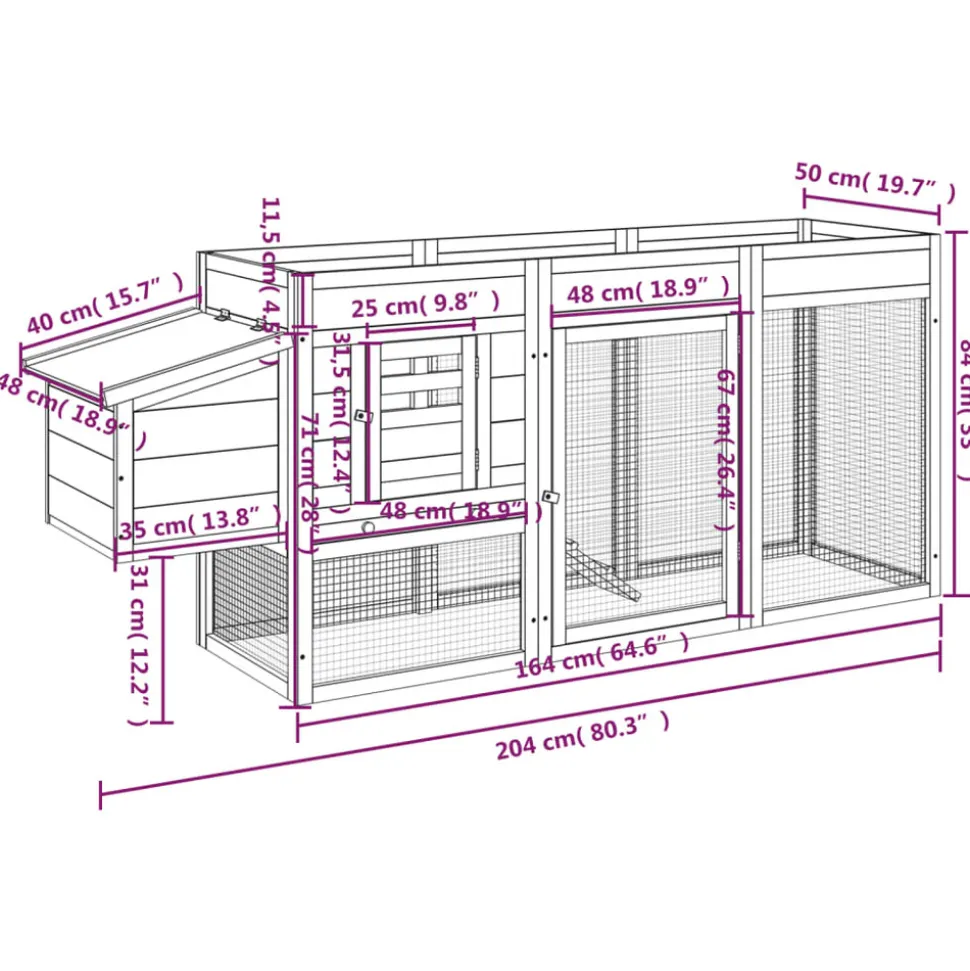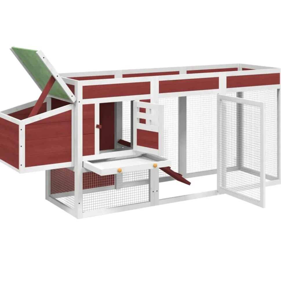 Le poulailler en bois offre un endroit confortable et accueillant pour les petits animaux, en particulier les poules, et leur permet de se détendre. Bois de pin massif : le bois de pin massif est un matériau naturel magnifique. Le bois de pin a un grain droit et les nœuds donnent au matériau son aspect caractéristique et rustique. Parc à poules tout-en-un : comprenant un grand nichoir, une aire de repos et une rampe d’accès, la cage à poules offre toujours suffisamment d’espace pour que les poules puissent s’adonner à leurs activités en toute liberté. Clôtures en grillage : le poulailler est équipé de clôtures grillagées respirantes, protégeant les poulets ou autres animaux des prédateurs extérieurs. Toit résistant à l’eau : le toit résistant à l’eau de ce poulailler offre à vos animaux de compagnie un environnement chaud, sec, sûr et confortable. Large utilisation : le nichoir à poules convient également à d’autres animaux, tels que les lapins, les canards, les oies et les oiseaux, etc. Et vous pouvez également planter des herbes ou des légumes sur le dessus de la boîte à poulets. Couleur : moka, blanc, vert Matériau : bois de pin massif, contreplaqué Dimensions : 204 x 50 x 84 cm (L x l x H) Comprend un plateau extractible L’assemblage est requis