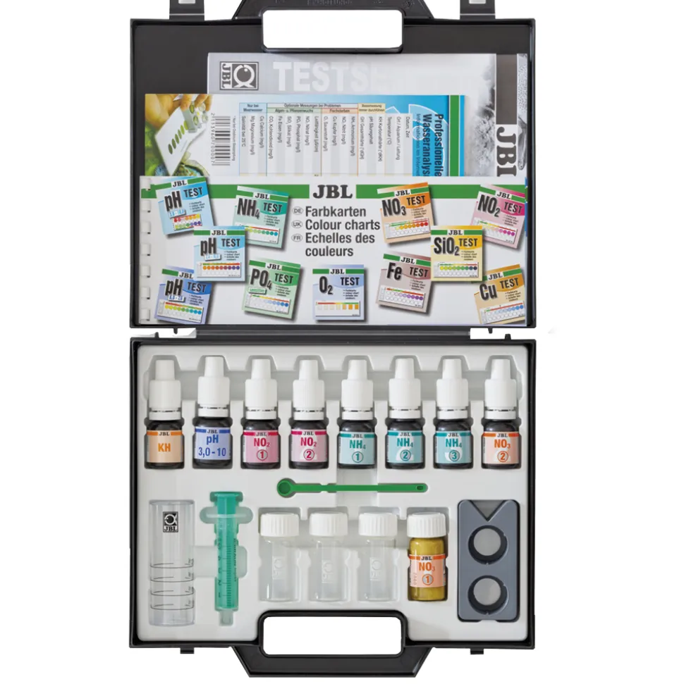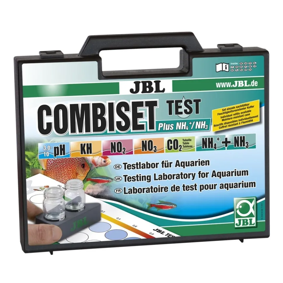 Ce coffret de test Combi Plus NH4 vous permettra de contrôler les valeurs les plus importantes de votre bassin ou aquarium : pH, KH, NO2 (nitrite), NO3 (nitrate) et NH4/NH3 (ammonium / ammoniac). Son système comparatif de laboratoire permettra de compenser la coloration propre à l’eau. Ce coffret en plastique étanche comprend une seringue pour un dosage facile de la quantité d’eau ainsi que des tableaux pour inscrire les résultats.