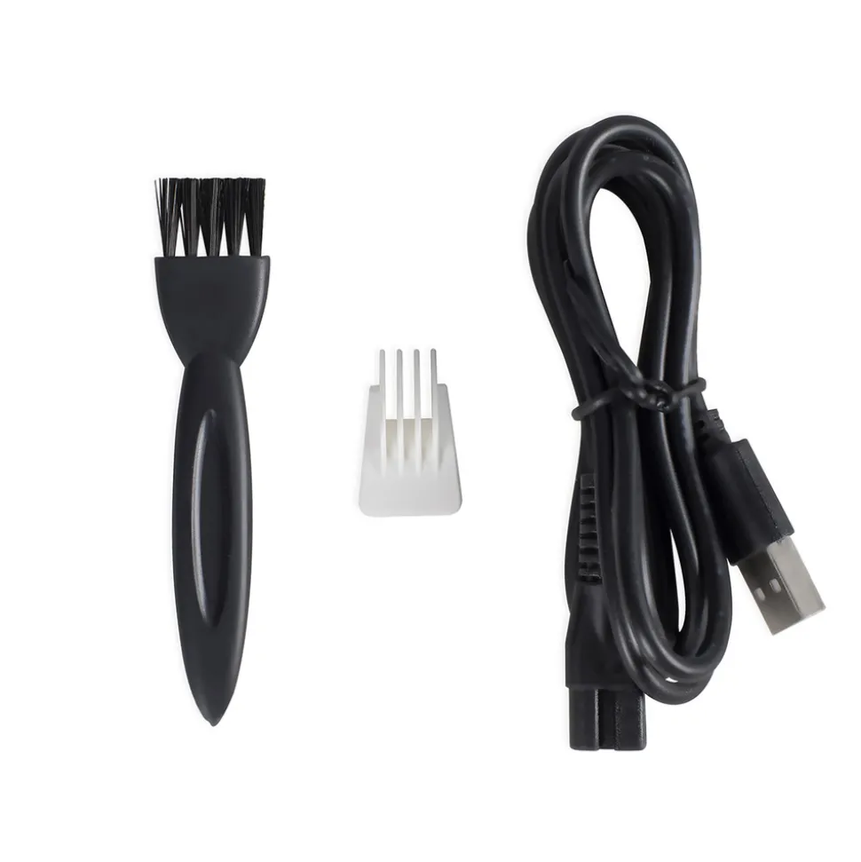 Accessoires inclus : câble de chargement USB, sac de transport et brosse de nettoyage